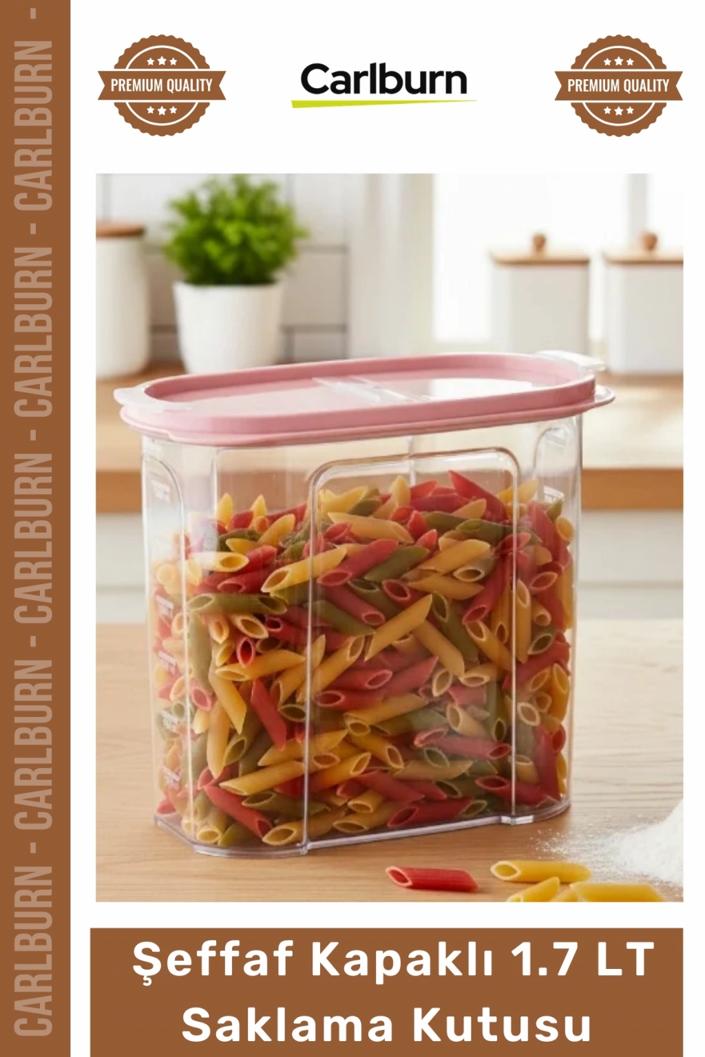 * **İdeal Hacim:** 1.7 litre geniş iç hacmi sayesinde farklı miktarlardaki kuru gıdalarınız için yeterli depolama alanı sunar, erzak saklama ihtiyaçlarınıza pratik çözüm getirir.