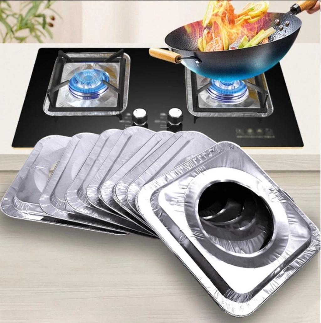 Özel Üretim Dayanıklı Kolay Temizlik Mutfak Düzen Yağ Koruyucu 10 Adet Alüminyum Ocak Koruyucu Folyo