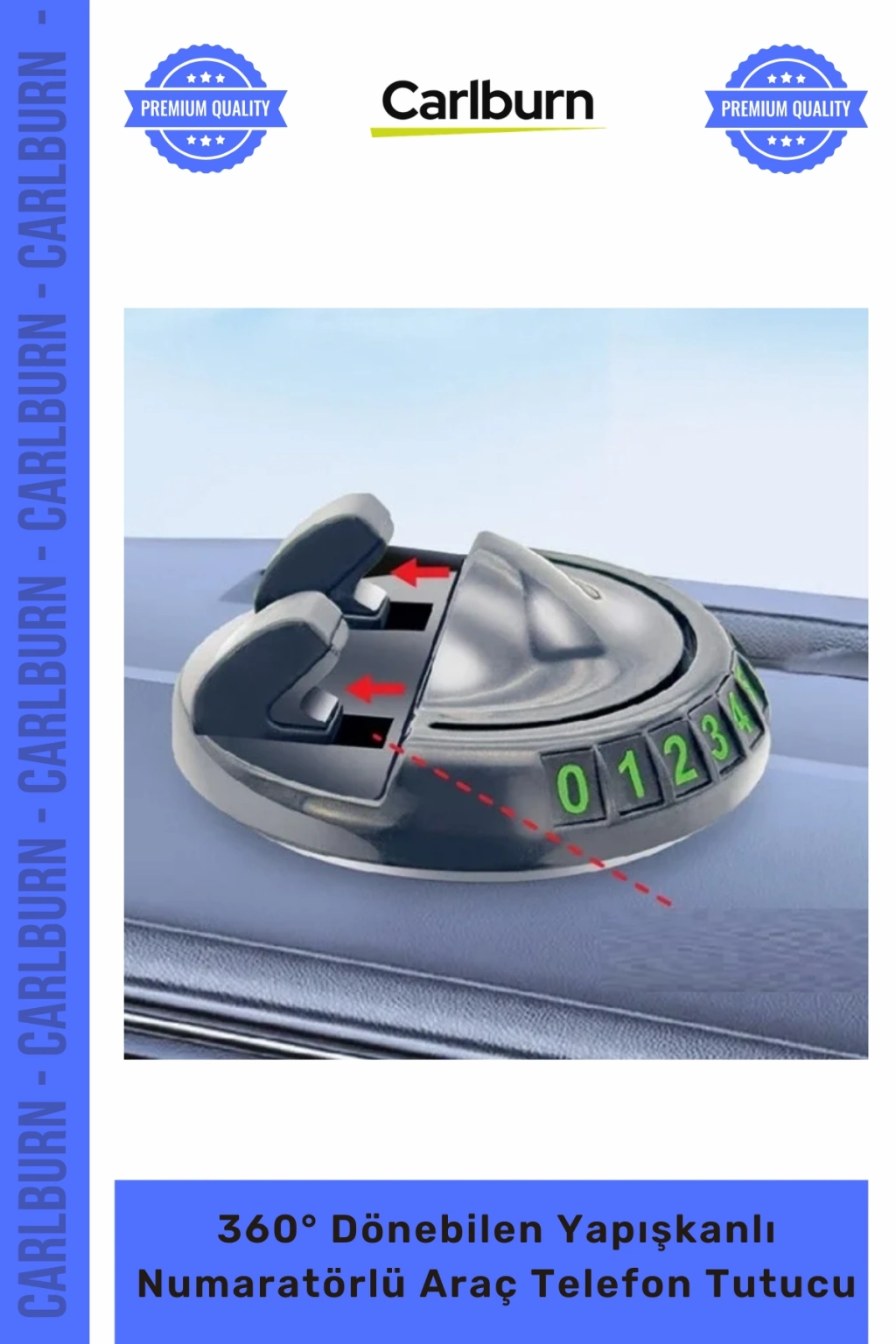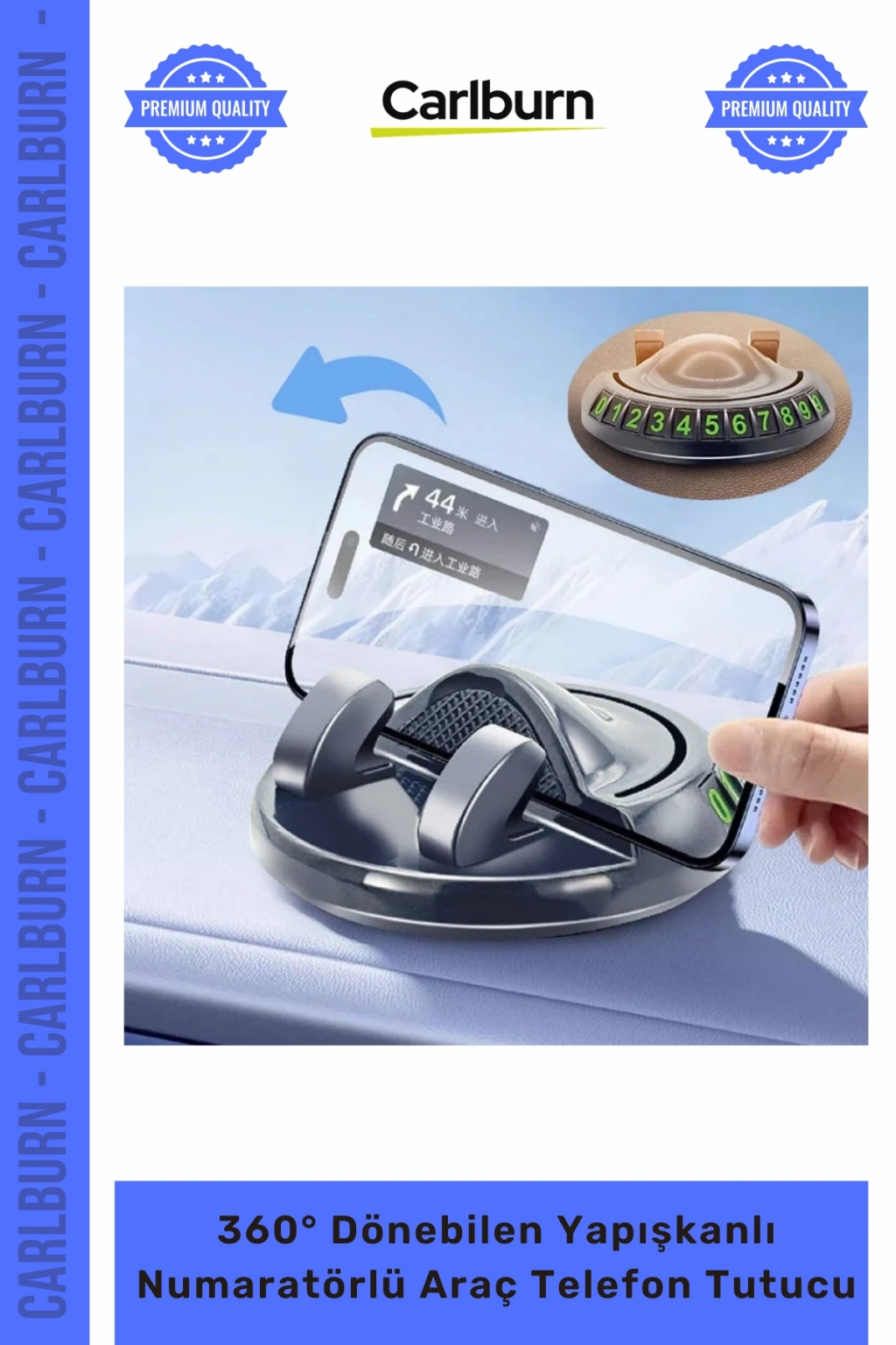 Özel Üretim Silikon Sarsıntı Önleyici 360° Dönebilen Yapışkanlı Numaratörlü Araç Telefon Tutucu