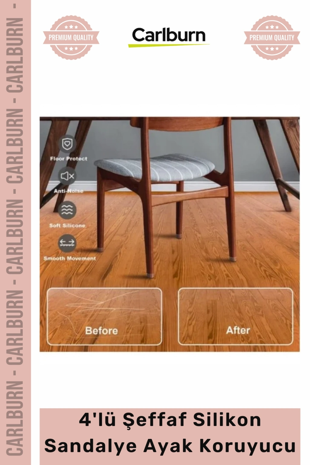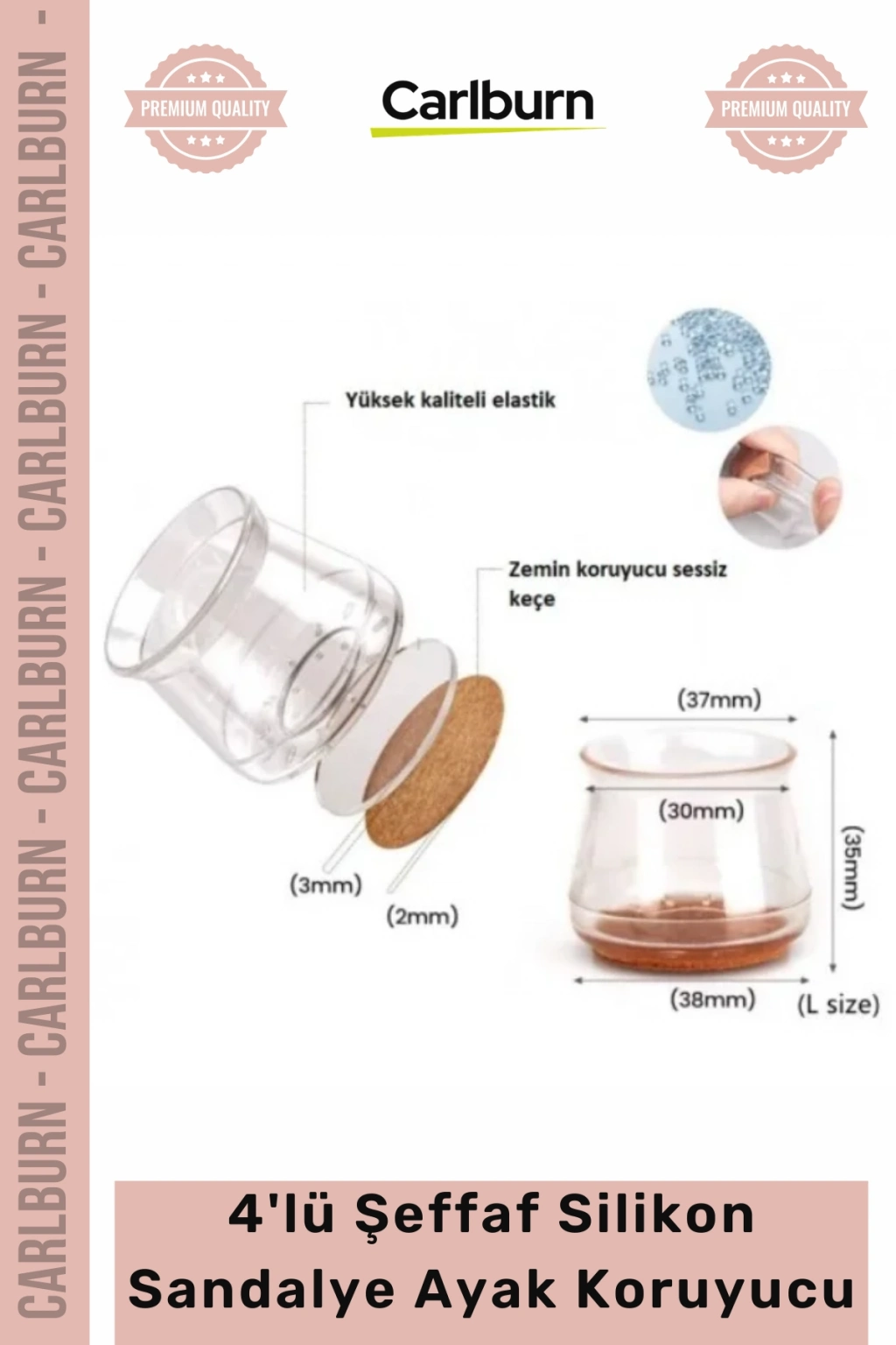 Bu pratik ve estetik "4'lü Keçeli Şeffaf Silikon Sandalye Ayak Koruyucu Seti", evlerden ofislere, kafelerden restoranlara kadar sandalye kullanılan her alanda ideal bir çözümdür. Mobilyalarınızın ömrünü uzatırken, zeminlerinizi korur ve size huzurlu bir kullanım deneyimi sunar. Sandalye ayaklarınıza tam oturan bu dayanıklı silikon koruyucular, mobilya ve zeminleriniz için uzun vadeli, akılcı bir yatırımdır. Gıcırtı seslerine veda edin, çizilmelere son verin! Mobilyalarınız için hem koruyucu hem de estetik bir dokunuş arıyorsanız, bu set tam size göre. Kullanım öncesi ürün ölçülerini kontrol ederek en doğru uyumu yakalayabilirsiniz. Şimdi sipariş verin, yaşam alanlarınızdaki konforu ve sessizliği keşfedin!