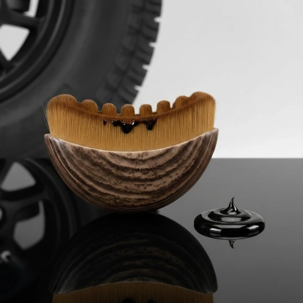 *   **Homojen Dağıtım:** Yüksek yoğunluktaki dayanıklı fırça kılları, parlatıcı ürünlerin lastik yüzeyine tam olarak yayılmasını sağlayarak mükemmel homojenlik sunar.