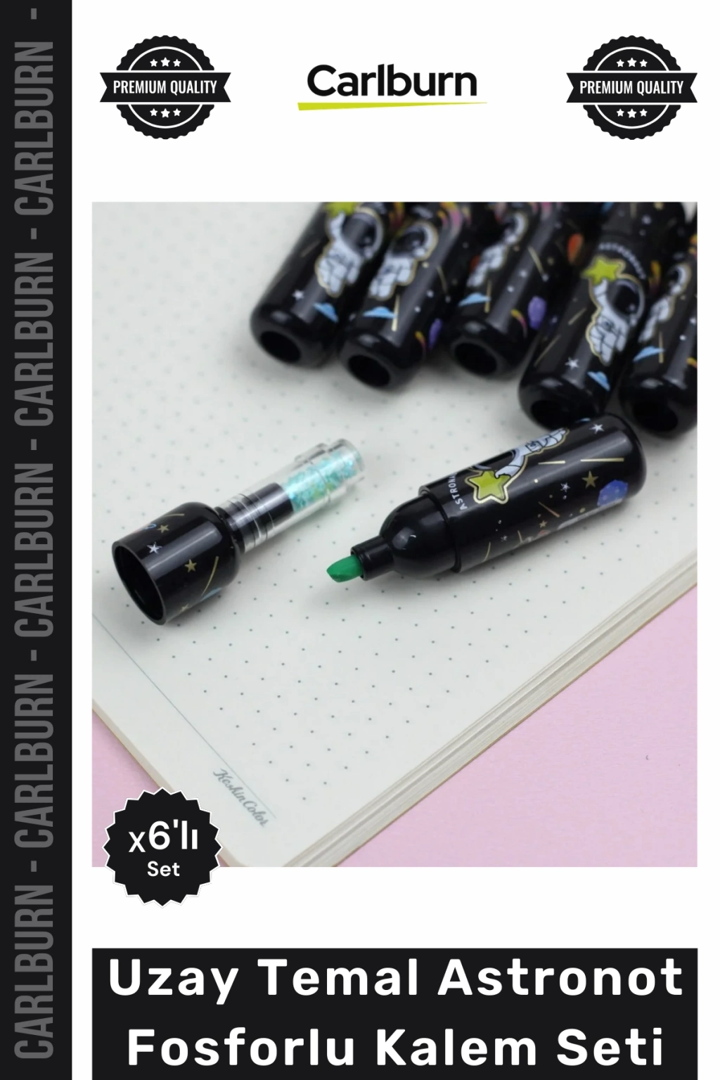 #Kalem Özel Üretim Yüksek Kalite 6 Renk Parlak Uzay Temalı Ders Çalışma Astronot Fosforlu Kalem Seti