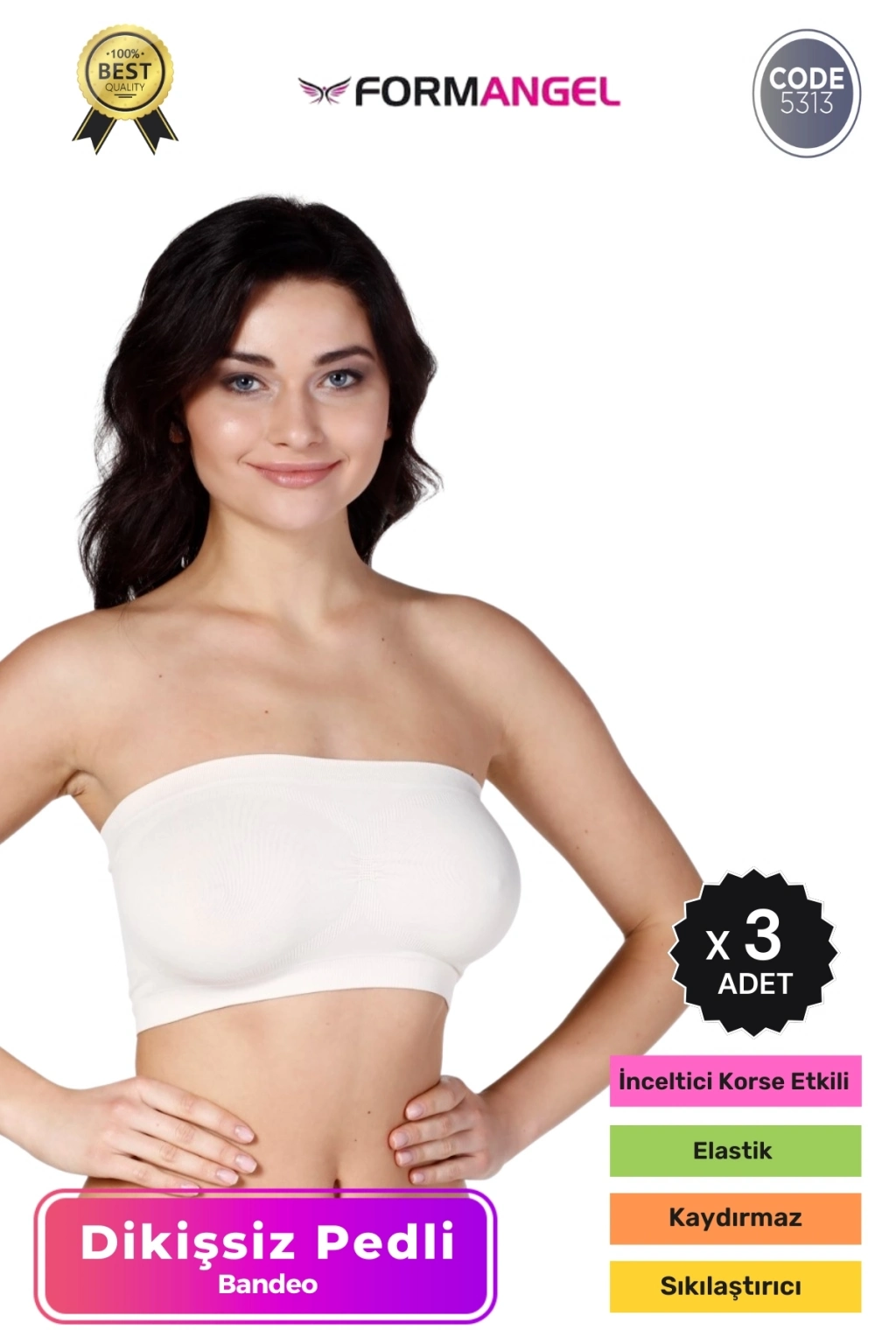 #Bandeo Seamless Toparlayıcı Kadın Basic Örme Dikişsiz Pedli Bandeo Büstiyer - 3 Adet