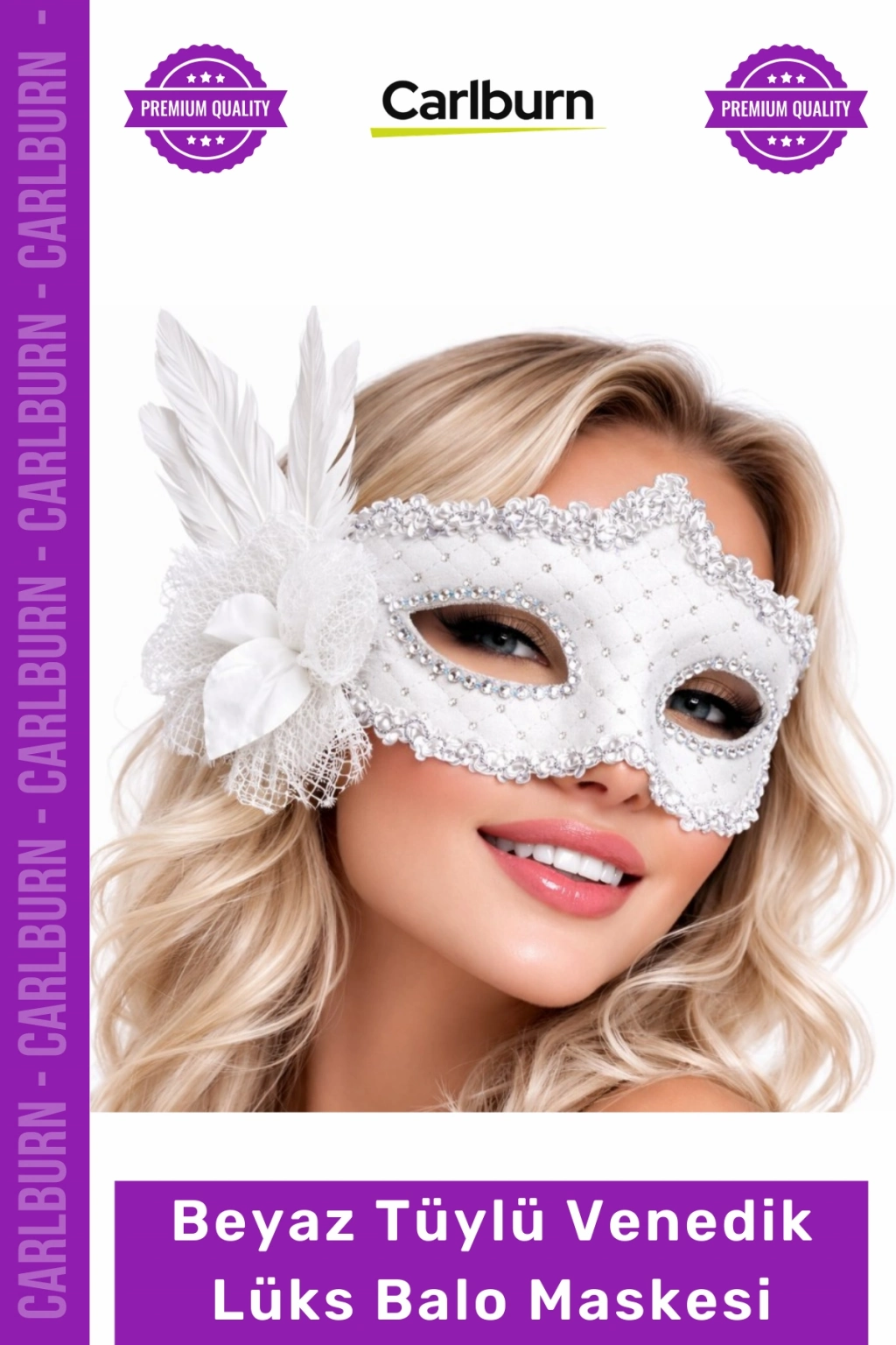 #BaloMaskesi Zarif Gösterişli Beyaz Tüylü Venedik Lüks Parti Kostüm Etkinlik Özel Davet Balo Maskesi