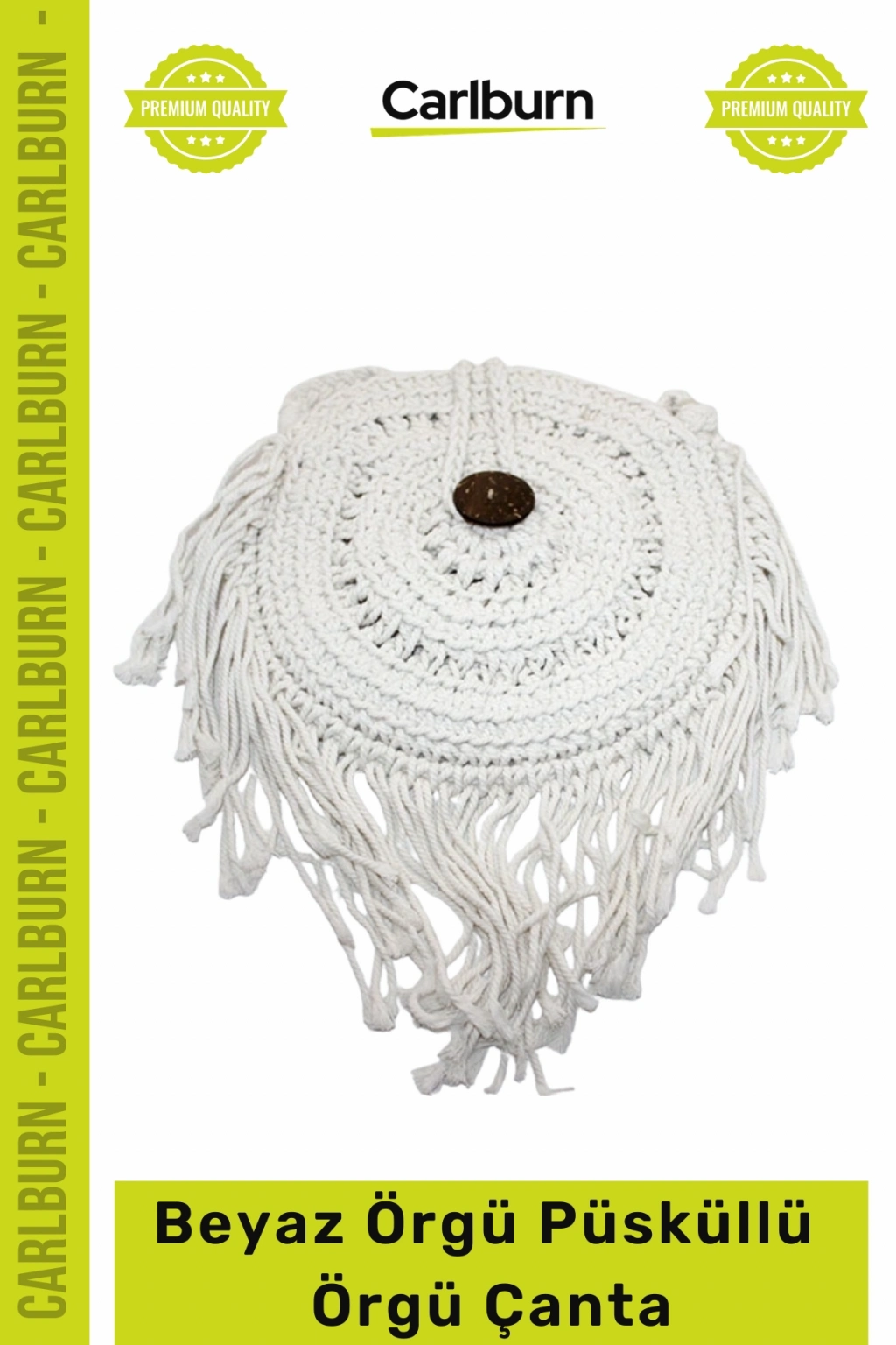 #Çanta Beyaz Örgü Püsküllü Şık Zarif Hafif Dayanıklı Yapısıyla İdeal Günlük Kullanım Aksesuar Çanta