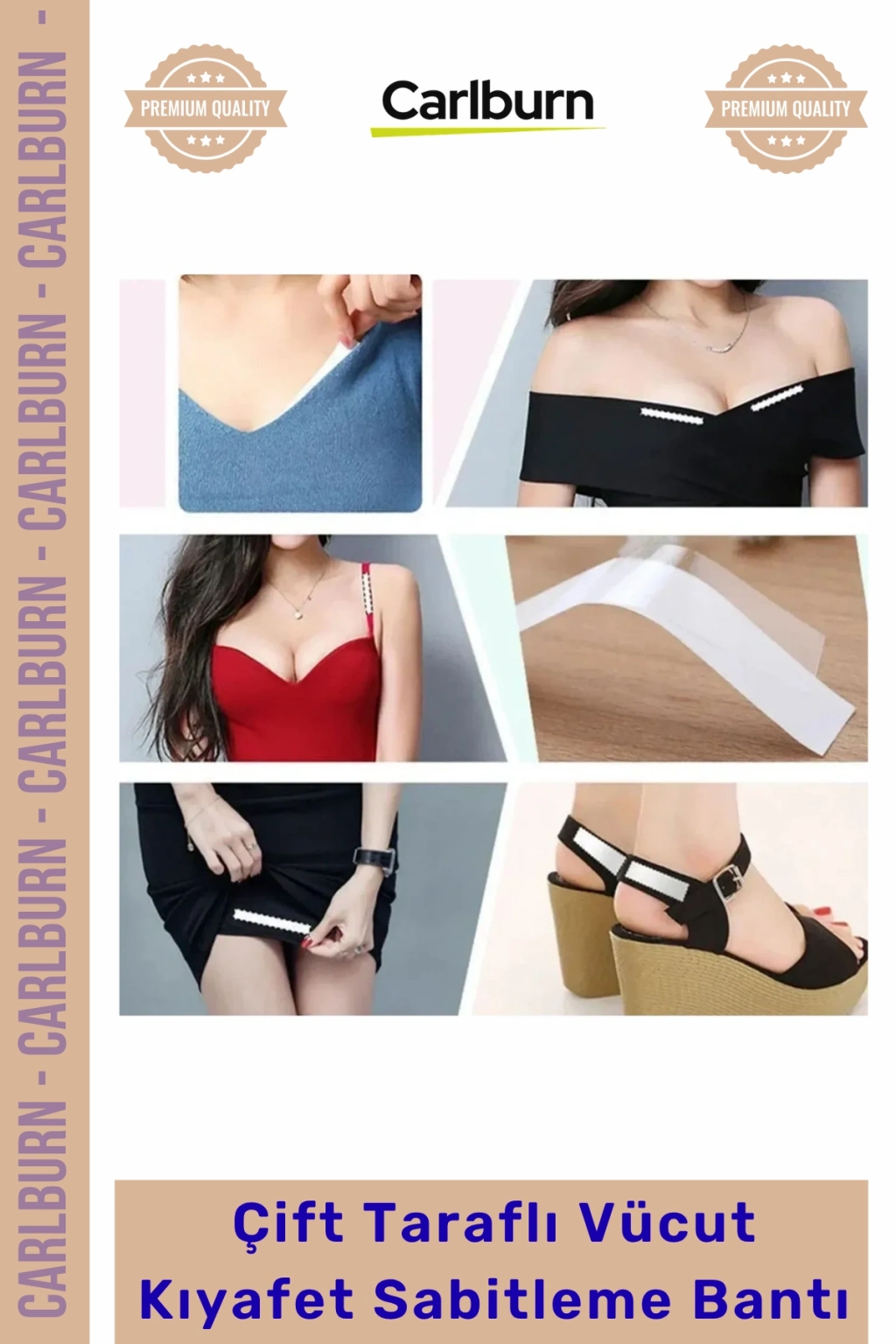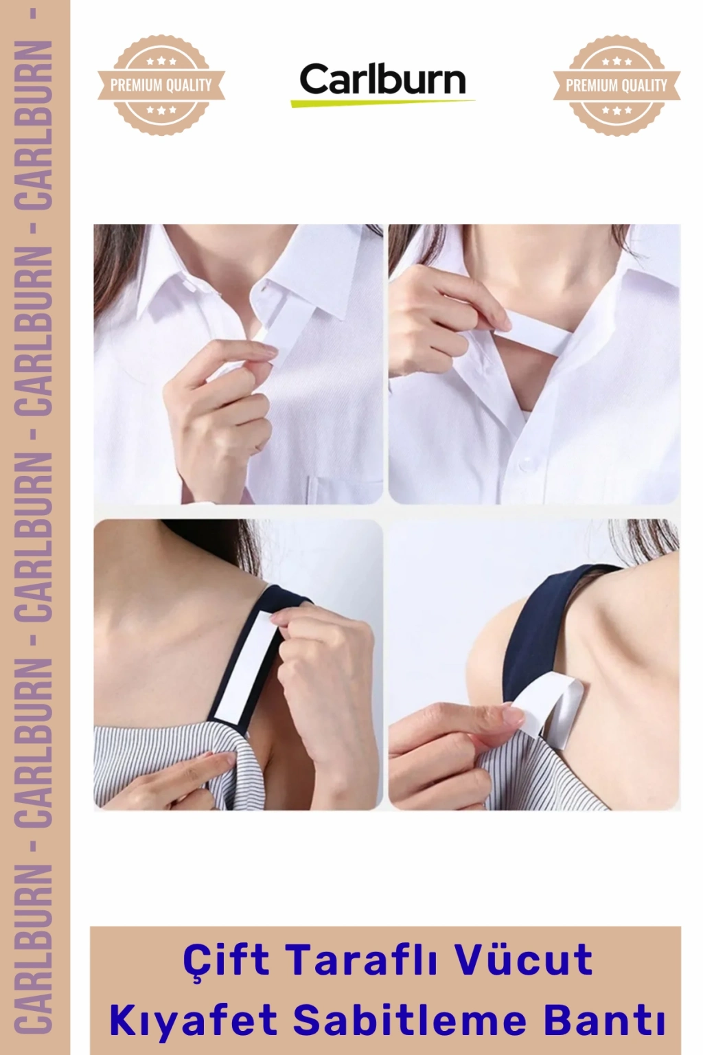 Bu çok amaçlı sabitleme bandı sadece özel günlerde değil günlük hayatta da gömlek yakalarının düzeltilmesi, düşük omuzlu elbiselerin sabitlenmesi ve sütyen askılarının gizlenmesi gibi pek çok alanda kullanılabilir. Her kadının çantasında ve gardırobunda bulunması gereken bu vazgeçilmez aksesuar kıyafetlerin vücut hatlarına tam uyum sağlamasına yardımcı olarak estetik bir görünüm vadeder. Profesyonel moda çekimlerinden düğün organizasyonlarına kadar geniş bir kullanım alanına sahip olan bu ürün konforu ve şıklığı bir araya getirir.