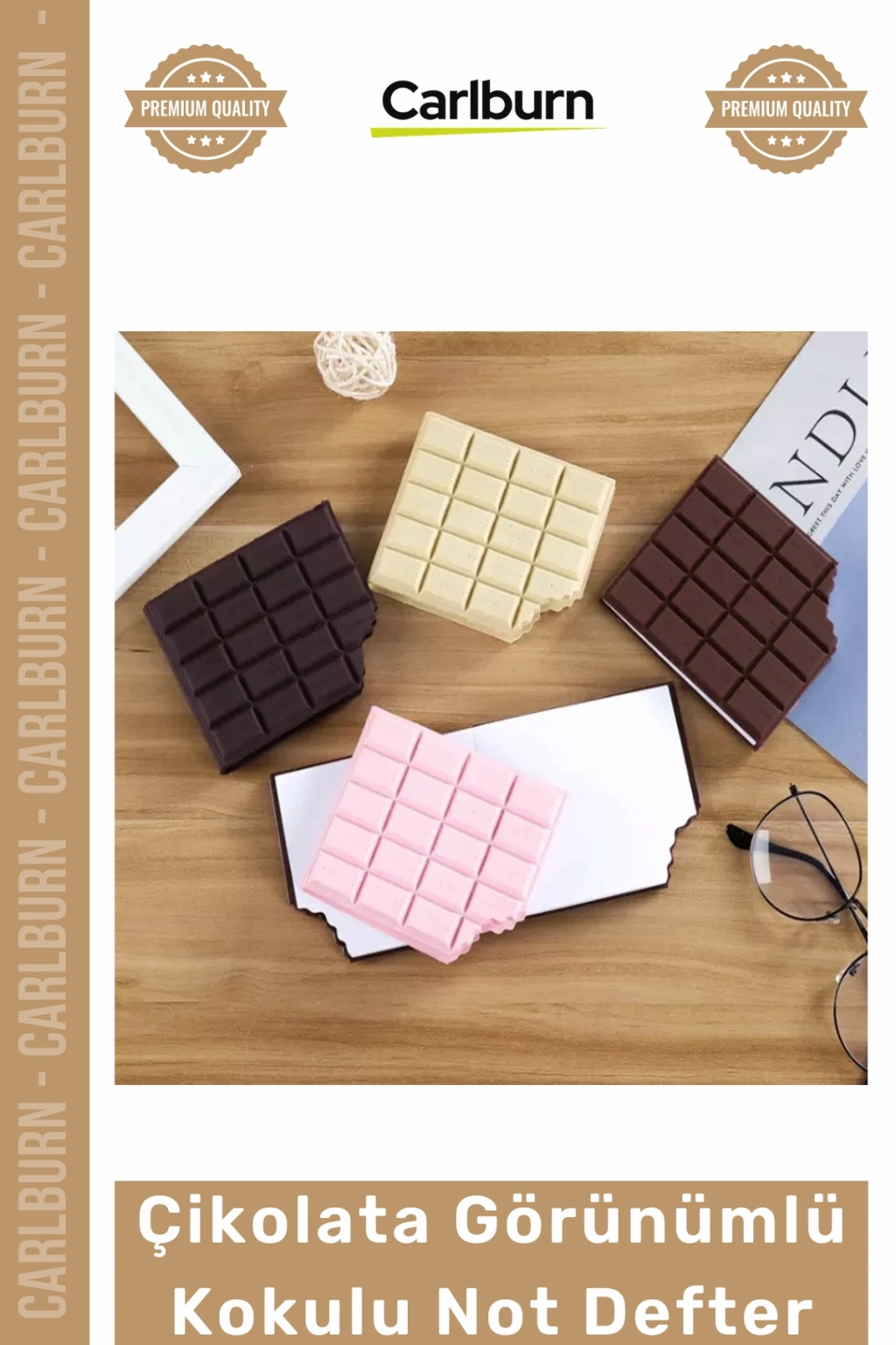Bu eşsiz çikolata görünümlü kokulu not defteri, alışılmışın dışındaki tatlı tasarımı ile dikkatleri üzerine çekiyor. İlk bakışta iştah açıcı bir çikolata kalıbını andıran bu sıra dışı defter, not alma deneyiminizi keyifli bir ritüele dönüştürür. Sahip olduğu hoş koku özelliği sayesinde sadece görsel bir şölen sunmakla kalmaz, aynı zamanda duyularınıza da hitap eder. Bu kompakt ve şık defter, günlük planlarınızı, önemli notlarınızı veya en değerli anılarınızı saklamak için idealdir. Profesyonel yaşamınızda veya kişisel kullanımınızda fark yaratacak benzersiz bir üründür.