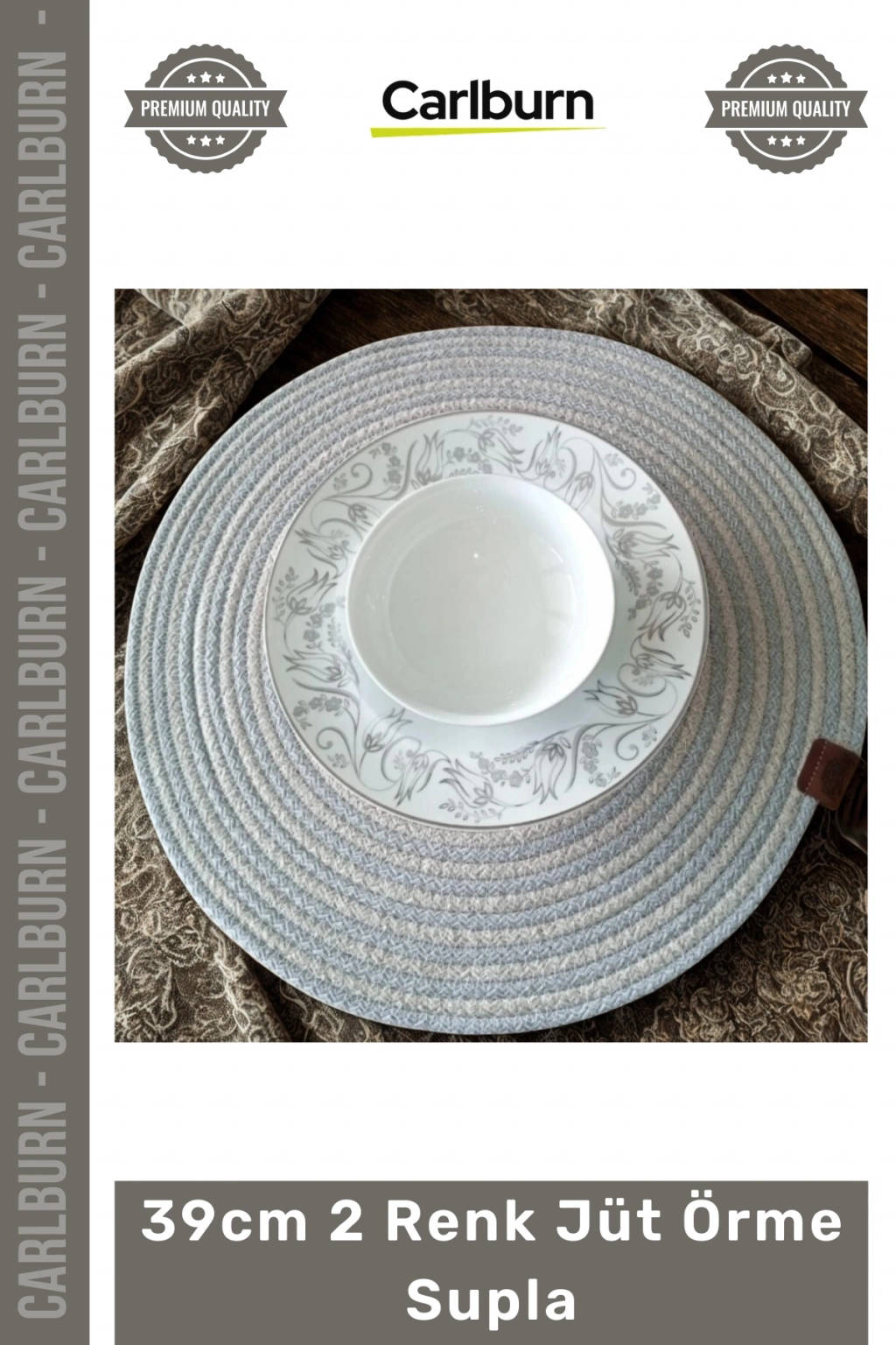 #Supla El Yapımı Doğal Hasır Sağlam Dikiş Yuvarlak Masa Sunum 39cm 2 Renk Jüt Örme Supla