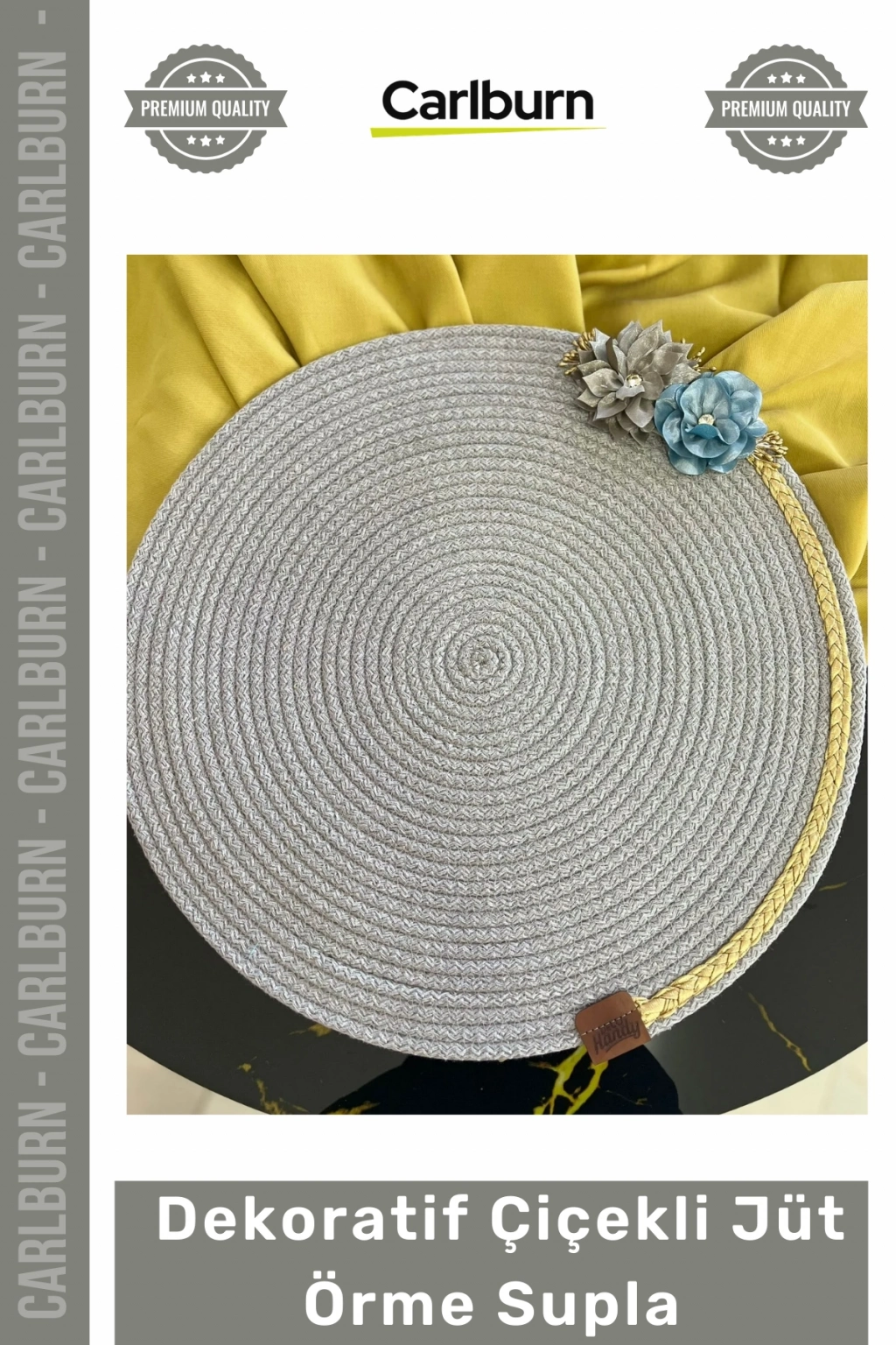 *   **Doğal Jüt Malzemesi:** Çevre dostu ve doğal jüt iplikten örülmüş olması sayesinde dayanıklılığı maksimize edilmiş, rustik bir görünüm sağlanmıştır.