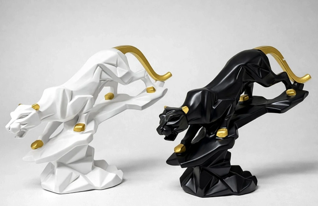 #Figür Güçlü Duruş Dinamik Estetik Görünüm Salon Ofis Masa Üstü Dekoratif Polyester Panter Figürü