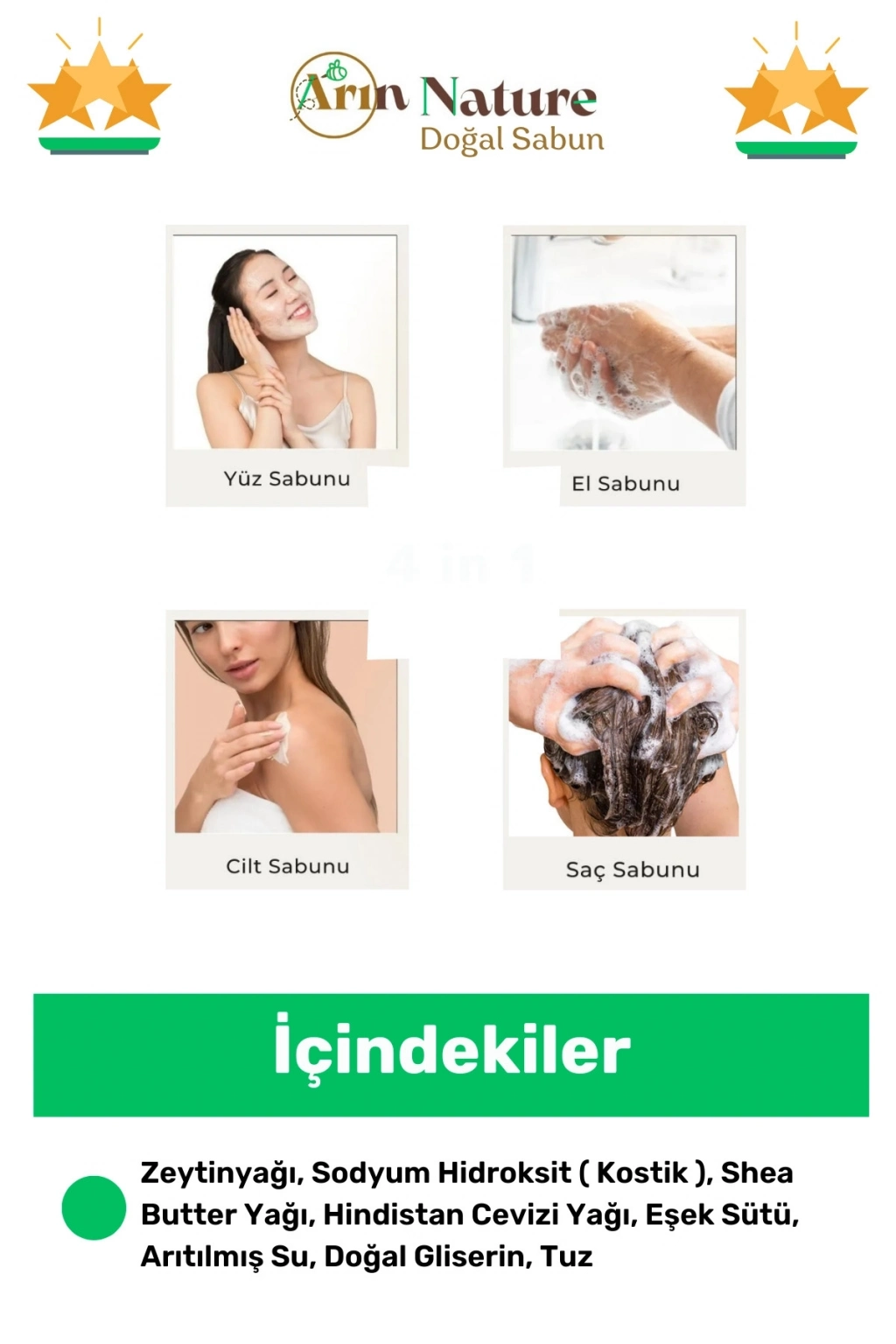 #eşeksütlü %100 Doğal Güzel Kokulu El Yüz Saç Vücut Orijinal Bitkisel Eşek Sütlü Sabunu 120g 1 Adet