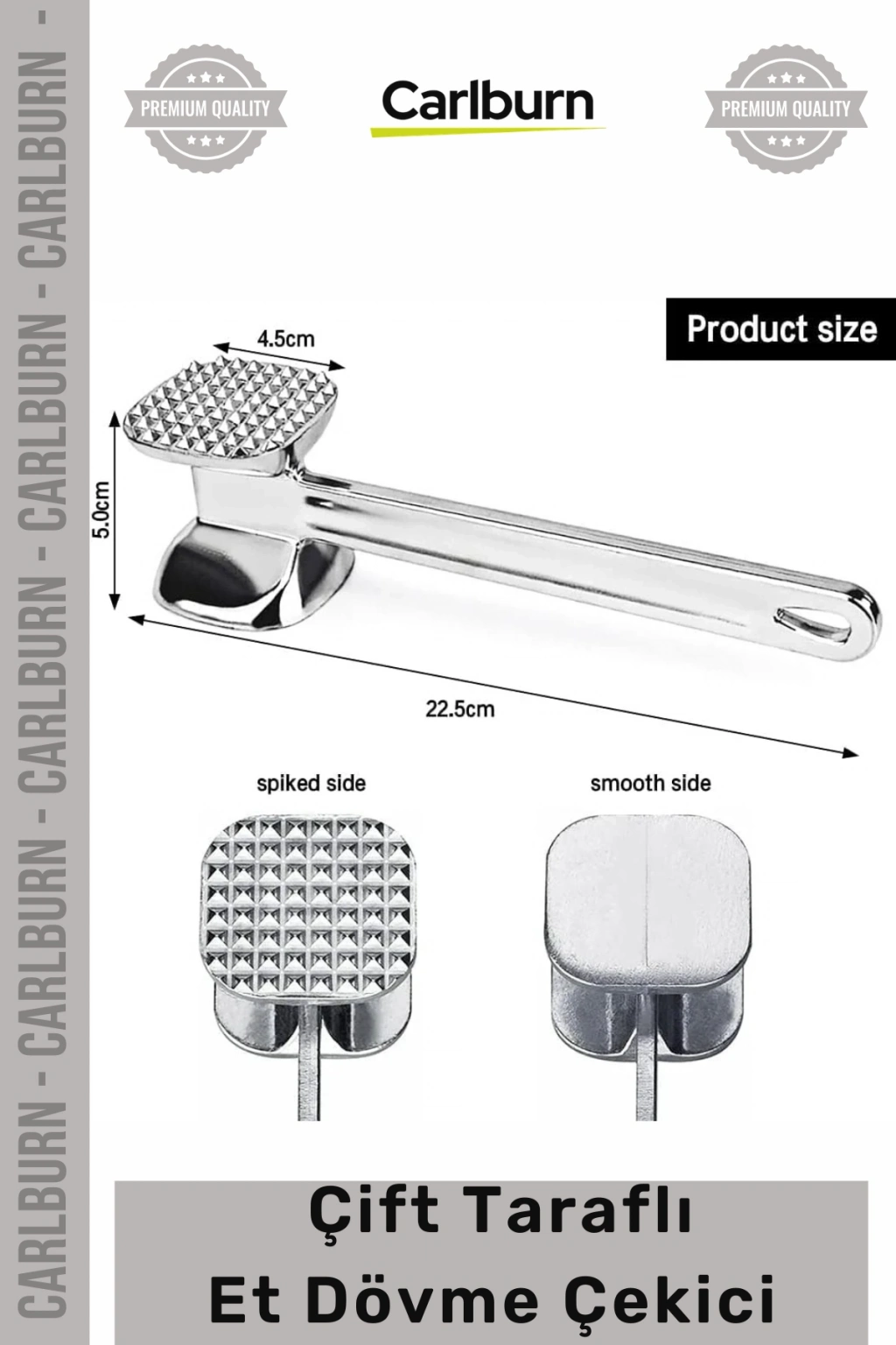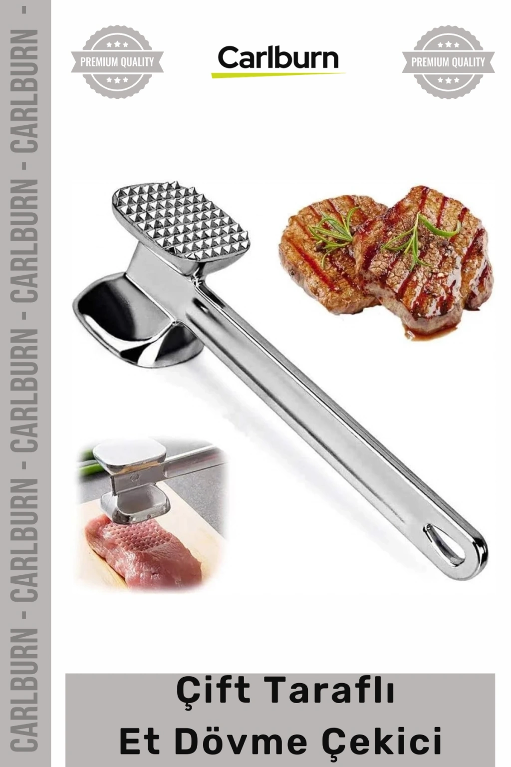 *   **Çift Taraflı Tasarım:** Etlerinizi farklı dokulara hazırlamanıza olanak tanıyan özel çift taraflı yüzey, her tarif için ideal kıvamı sağlar.
