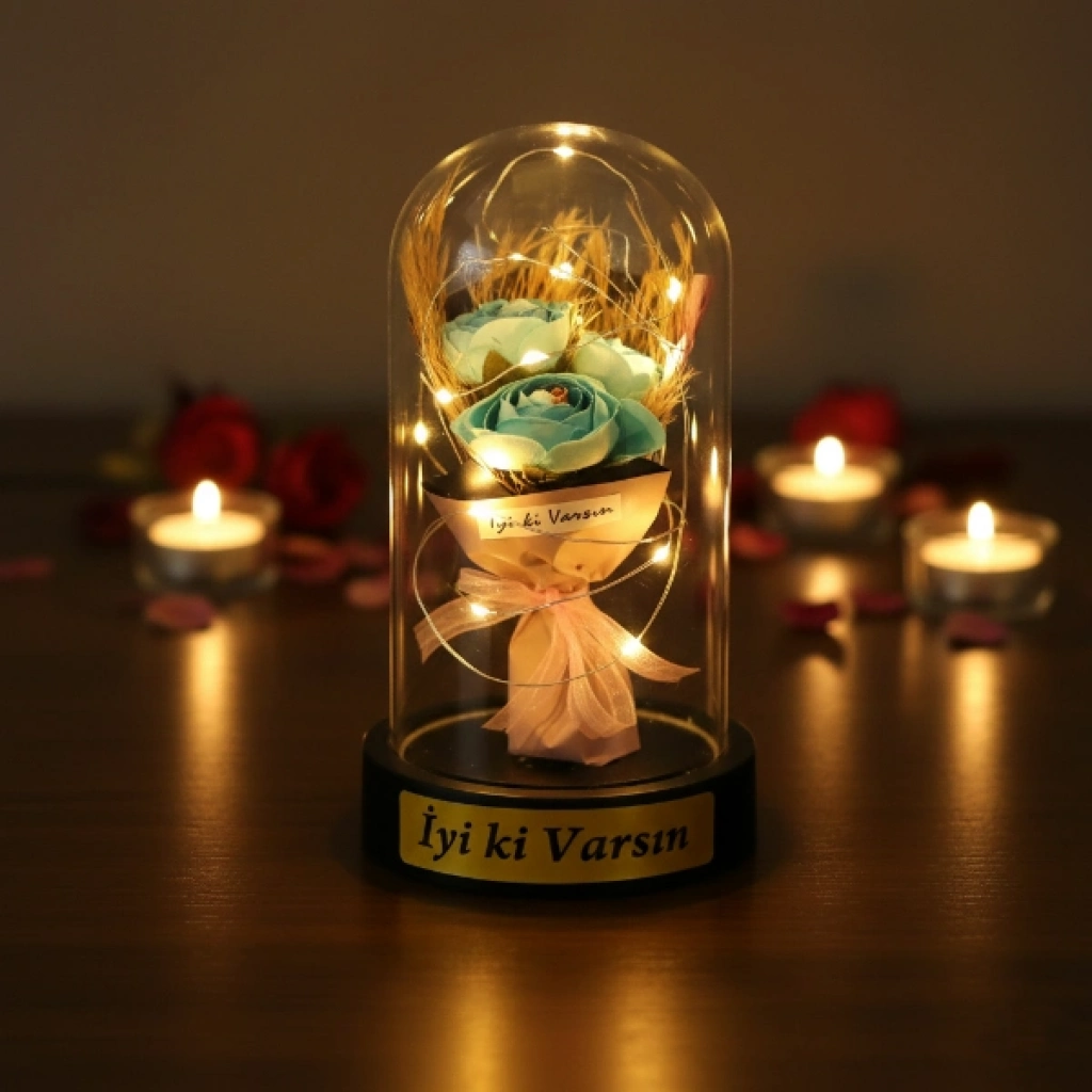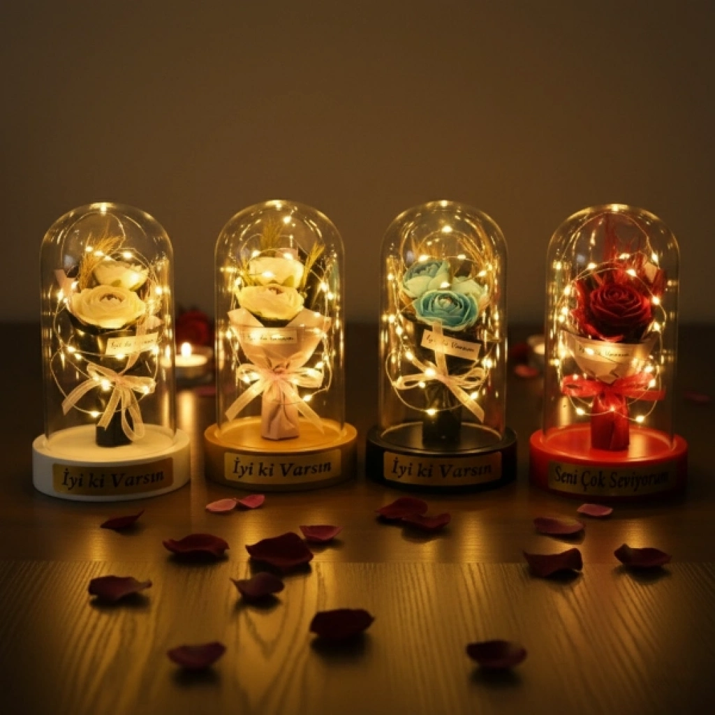 Bu dekoratif ürün, sadece bir aydınlatma aksesuarı değil aynı zamanda duygusal bir ifadedir. Oturma odası yatak odası veya çalışma masanızda şık bir masa üstü dekorasyon öğesi olarak kullanabilirsiniz. Özellikle romantik bir ambiyans yaratmak isteyenler veya sevdiklerine kalıcı bir anı bırakmayı amaçlayanlar için Gül Buketi Ledli Fanus eşsiz bir tercihtir. Yumuşak LED ışığı uyku öncesi huzurlu bir atmosfer sağlarken zarif gül buketi tasarımı mekanınıza sofistike bir değer katar. Estetik işlevsellik ve romantizmi bir arada sunan bu özel üretimi hemen sipariş ederek yaşam alanlarınızın havasını değiştirin.
