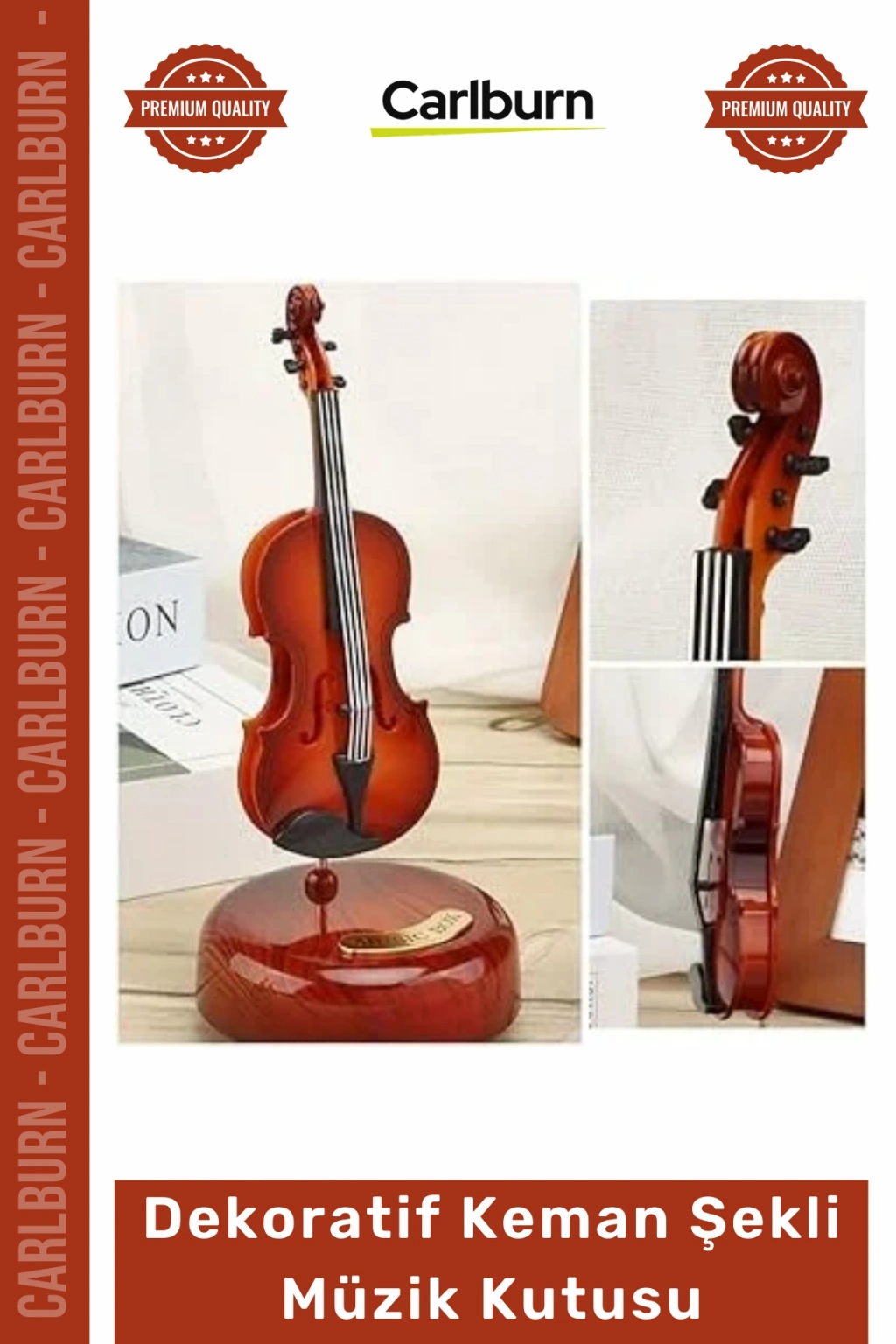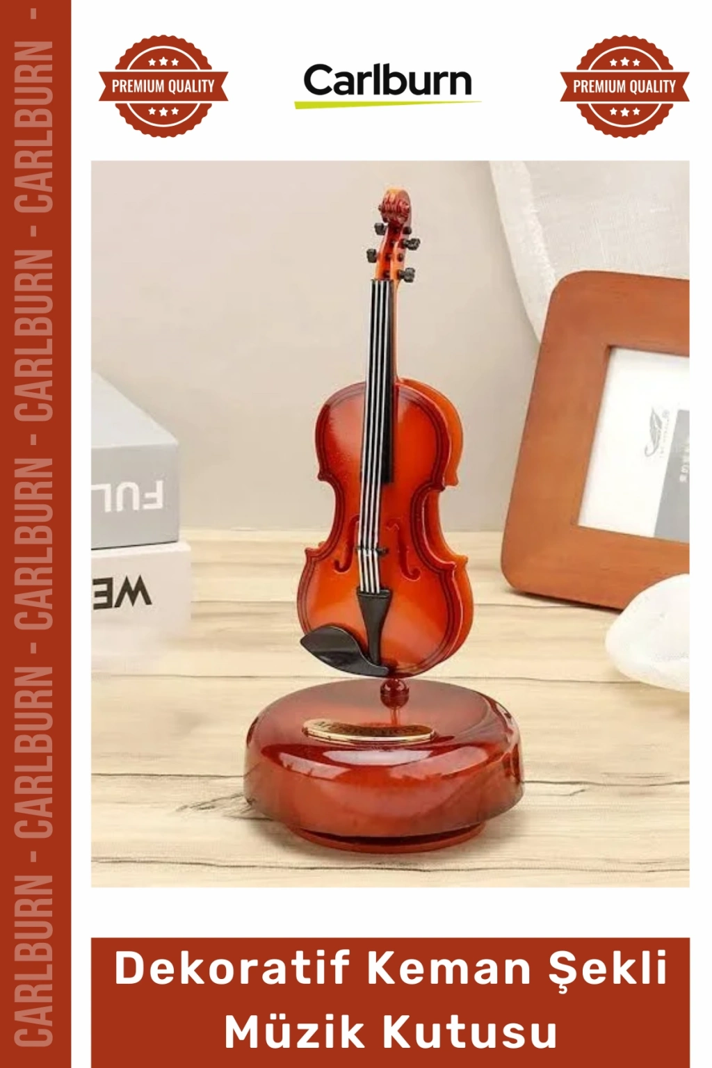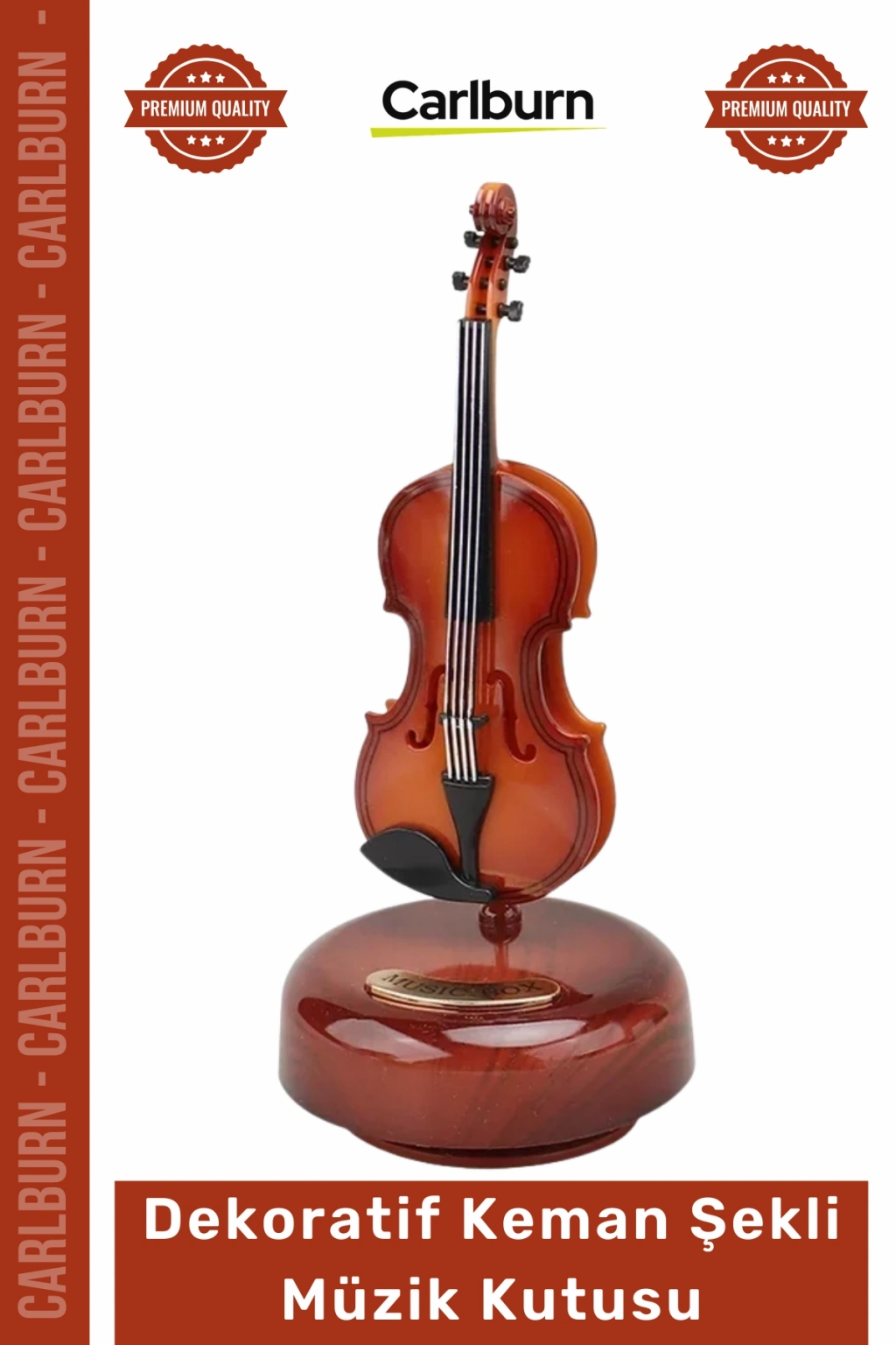 * **Ahşap Görünümlü Zarif Tasarım:** Gerçekçi ahşap deseni, **Hareketli Violin Müzik Kutusu**na lüks ve sofistike bir görünüm kazandırır.