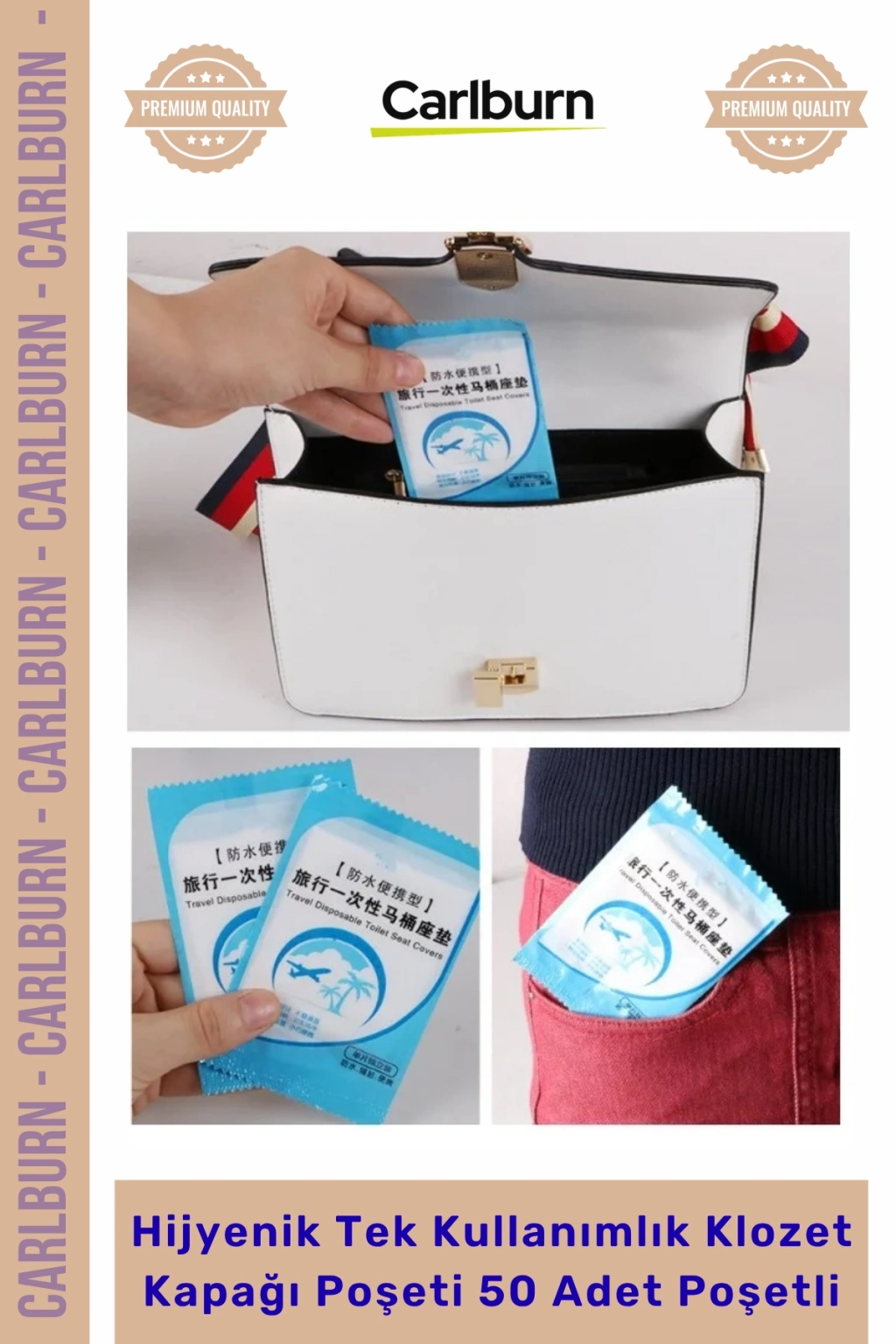 Özel Üretim Kaliteli Pratik Seyahat Hijyenik Tek Kullanımlık Klozet Kapağı Poşeti 50 Adet Poşetli
