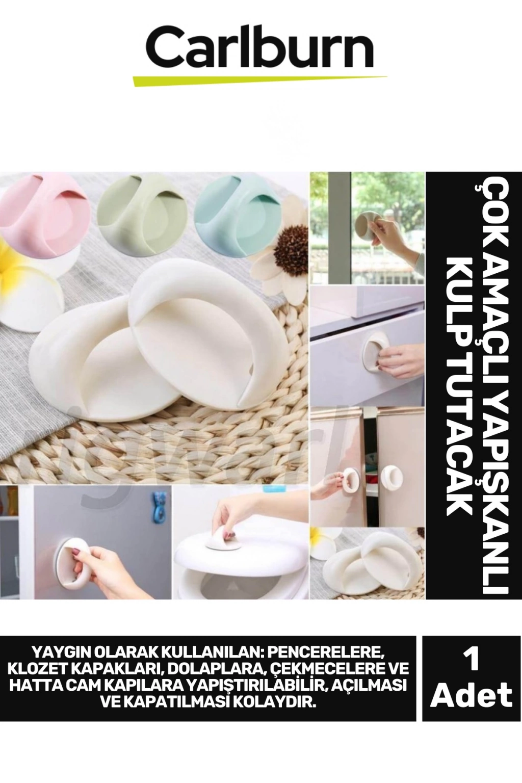 İz Bırakmayan Cam Fayans Kapı Ahşap Panel Pencere Klozet Dolap Çok Amaçlı Yapışkanlı Kulp Tutacak