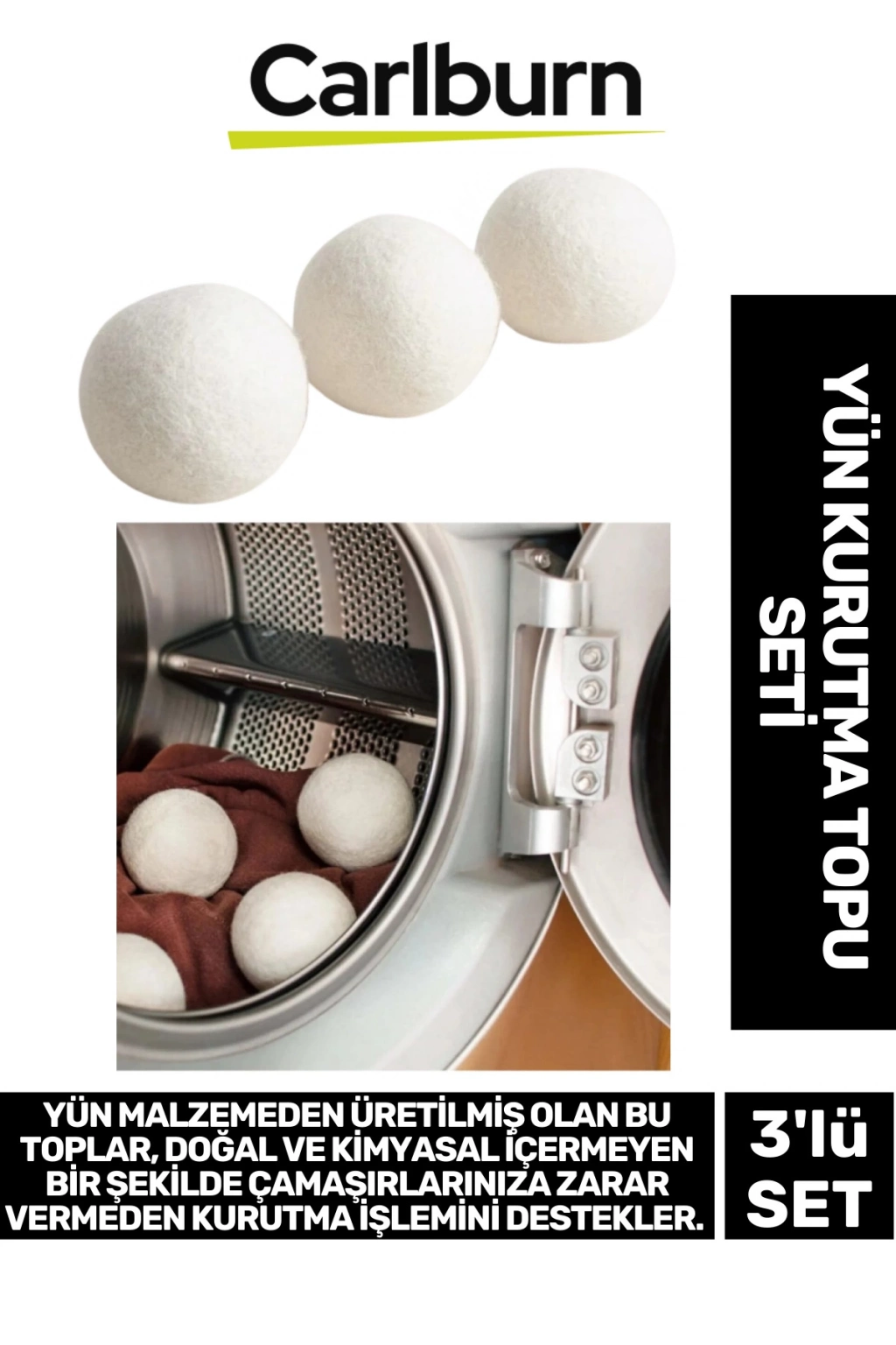 Kırışıklık Azaltıcı Çabuk Kuruma Sağlayan Doğan Sürtünme Engelleyici 3'lü Yün Kurutma Topu Seti
