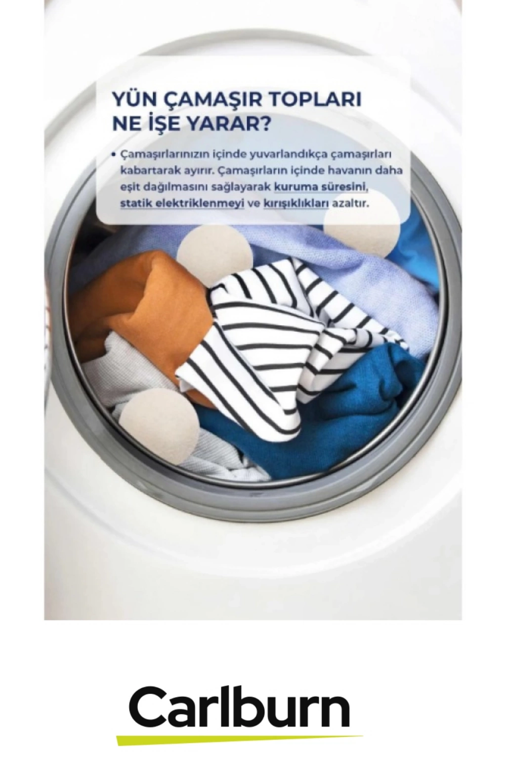 Ürün Özellikleri Bu 3'lü yün kurutma topu seti, çamaşırlarınızın kuruma süresini kısaltırken, ve çamaşırların daha yumuşak olmasını sağlar.; Yün malzemeden üretilmiş olan bu toplar, doğal ve kimyasal içermeyen bir şekilde çamaşırlarınıza zarar vermeden kurutma işlemini destekler.; Kurutma makinesinde kullanıldığında, hava dolaşımını artırarak çamaşırların daha hızlı kurumasına yardımcı olur.; Ayrıca, yün kurutma topları, kıyafetlerinizin birbirine sürtünmesini engelleyerek, kumaşın daha uzun süre dayanmasını sağlar.; Paket İçeriği 3 Adet Yün Kurutma Topu