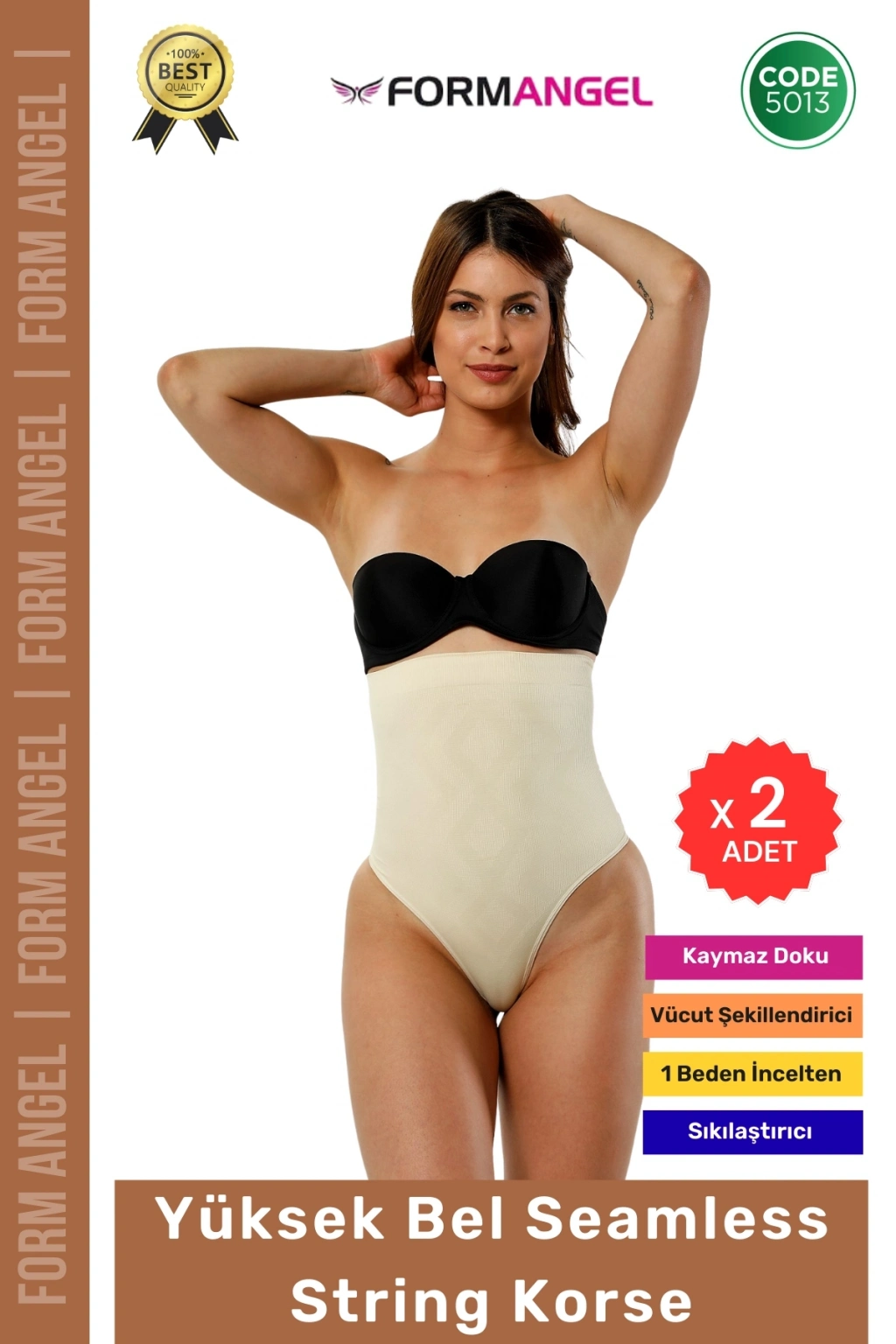 #Korse Seamless Dikişsiz Toparlayıcı Vücut Şekillendiren Kaymaz Yüksek Bel String Korse - 2 Adet