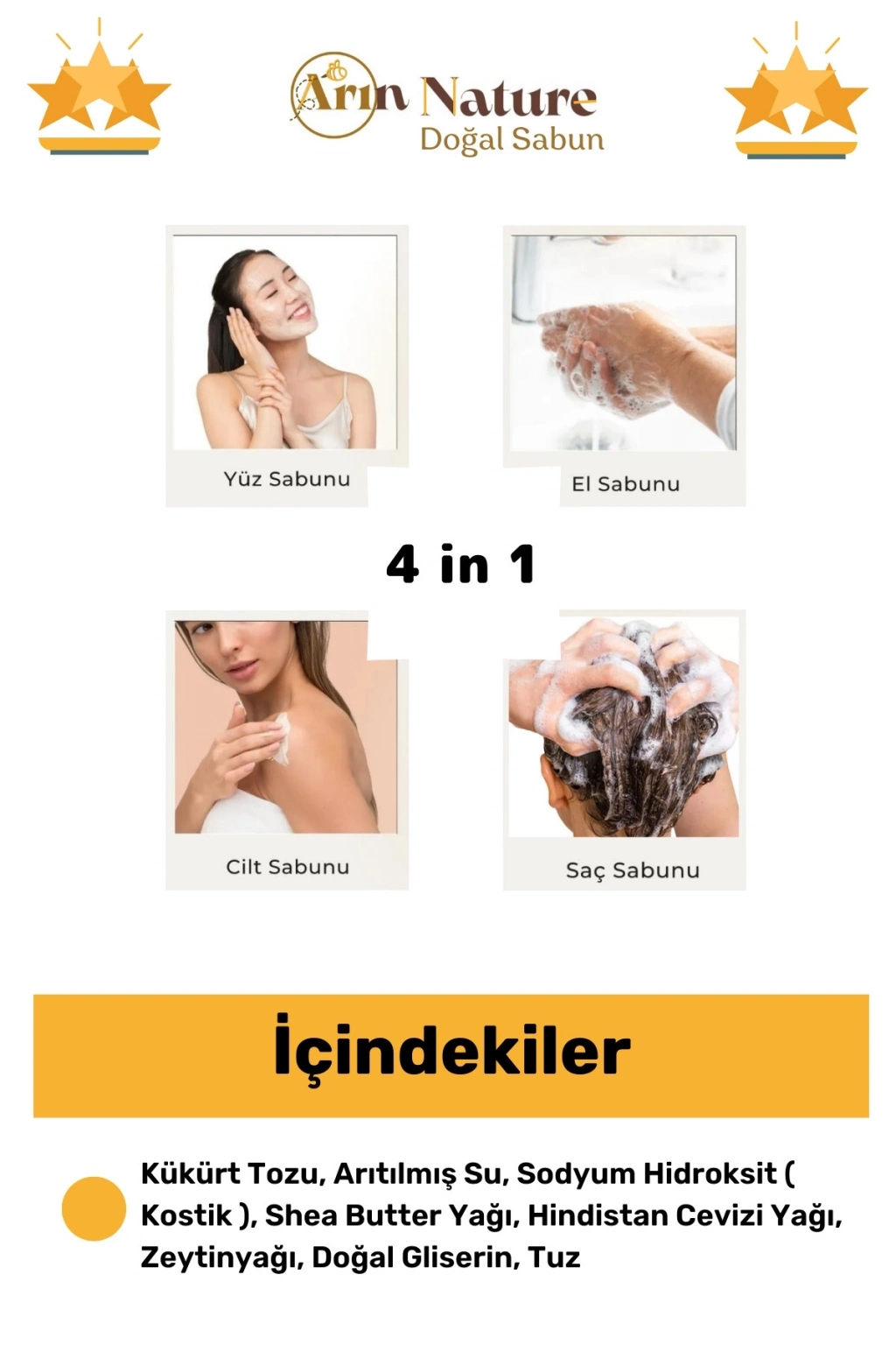 #kükürt %100 Doğal Güzel Kokulu El Yüz Saç Vücut Orijinal Bitkisel Kükürt Sabunu 120g - 4 Adet