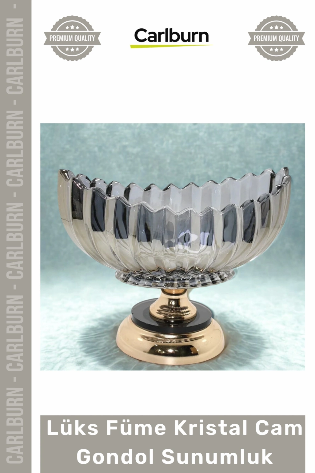 Sofralarınızda estetik bir devrim yaratan bu özel tasarım, derin füme kristal camın ağırlığını ve altın rengi metal ayakların ışıltısını yaşam alanlarınıza taşıyor. Premium malzeme kalitesi ve kavisli gondol formuyla dikkat çeken bu ürün, modern dekorasyon anlayışını zarafetle birleştirerek mekanınıza sofistike bir hava katıyor. Kristal camın karakteristik dokusu ve gold detayların uyumu, her bakışta kaliteyi hissettiren bir ikon haline geliyor.