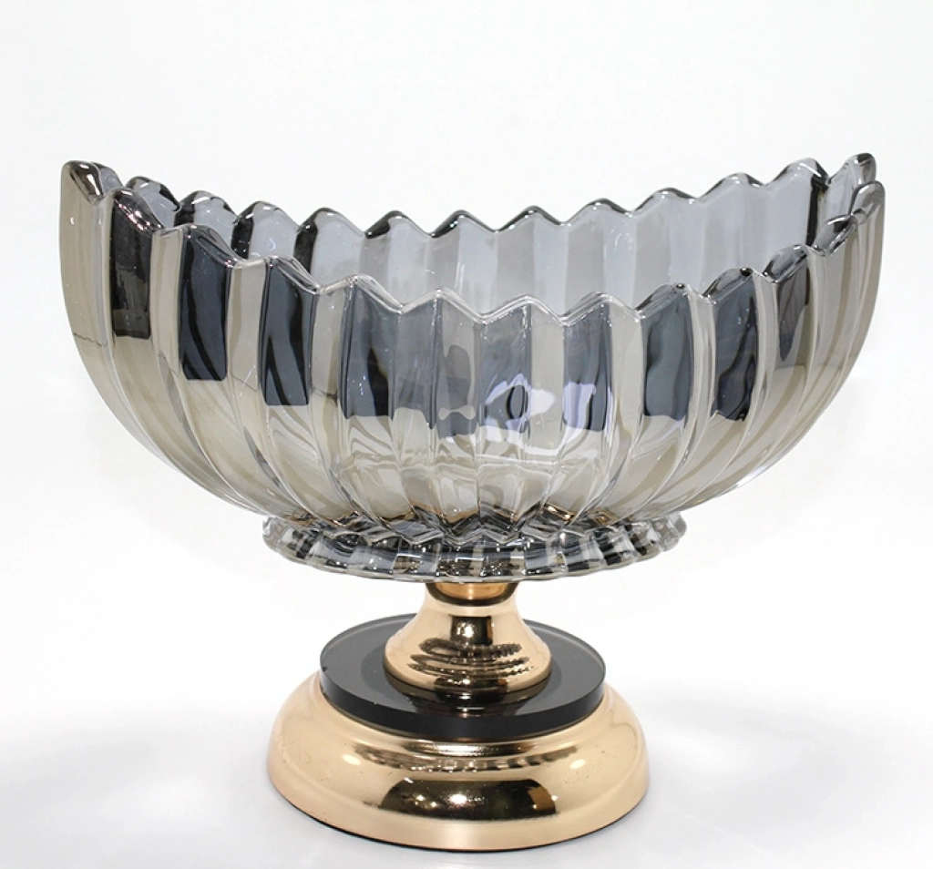 #Gondol Modern Dekoratif Meyvelik Tasarım Lüks Füme Kristal Cam Gondol Gold Ayaklı Sunumluk