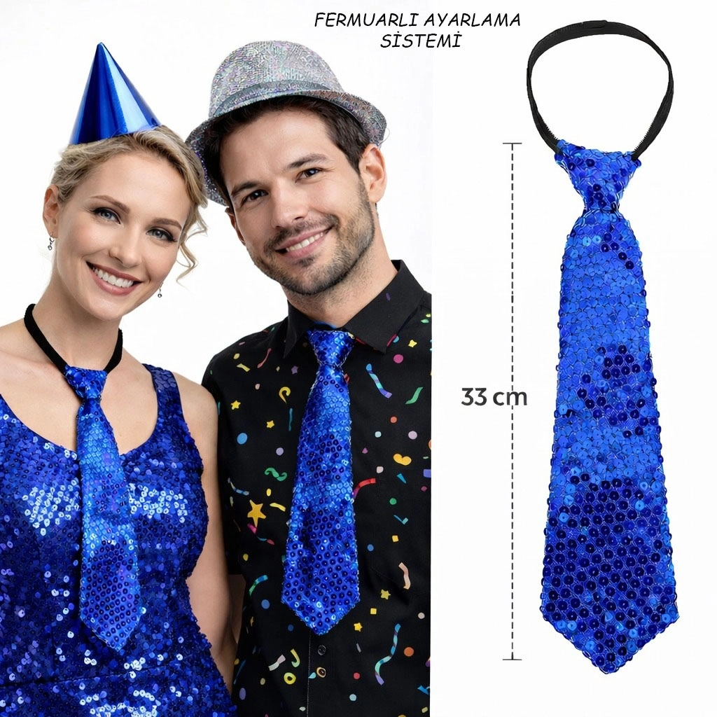 #Kravat Göz Alıcı Sahne Kostüm Aksesuarı Hazır Mavi Renk Pul Payetli Işıltılı Parti Kravatı 33 cm
