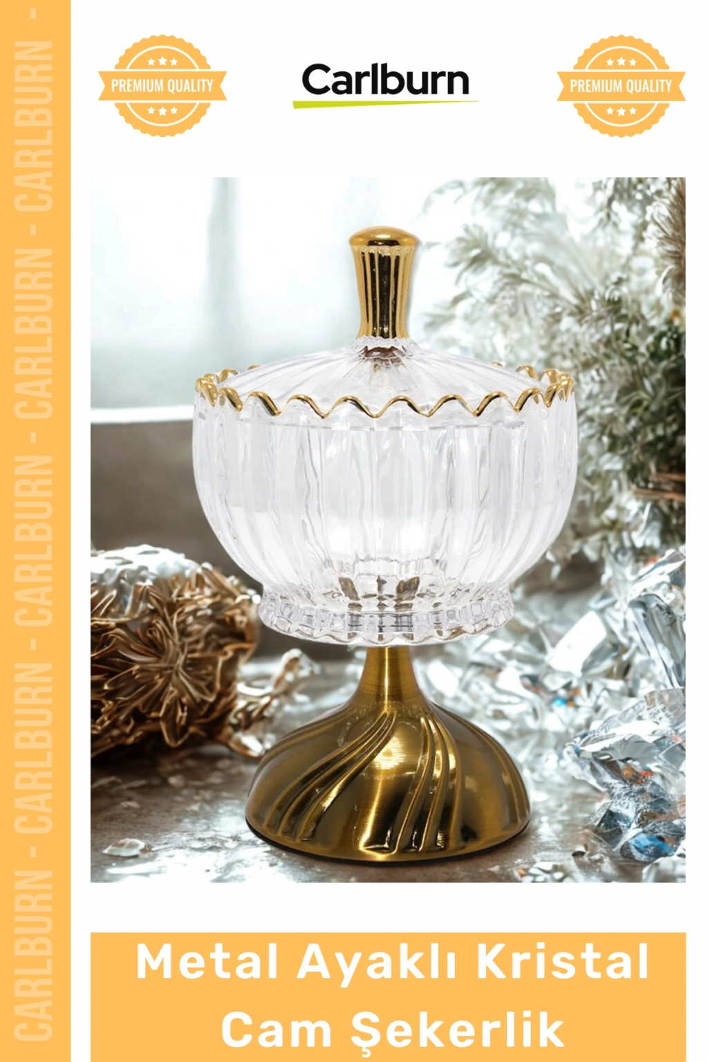 Zarafet ve lüksün mükemmel buluşması olan bu özel tasarım, kristal camın asaletini gold detayların büyüleyici ışıltısıyla birleştiriyor. Sofralarınızda ve dekorasyonunuzda fark yaratacak bu prestijli sunumluk, hem klasik hem de modern iç mekan tasarımlarına estetik bir dokunuş katar. Üstün kaliteli materyal seçimiyle uzun ömürlü ve göz alıcı bir kullanım deneyimi sunar.