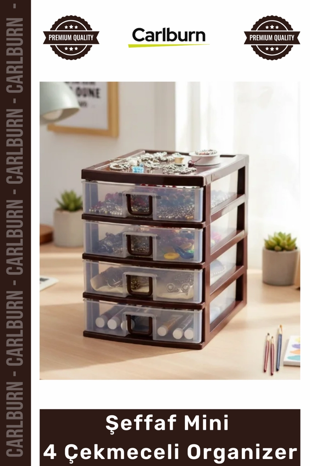 Bu eşsiz çekmeceli organizer, evinizdeki makyaj masalarından, çocuk odalarındaki çalışma masalarına; ofisinizdeki masalardan, banyolarınızdaki dolap içlerine kadar geniş bir kullanım yelpazesi sunar. İster takılarınızı, ister dikiş malzemelerinizi, isterse de önemli belgelerinizi düzenlemek isteyin, bu plastik depolama çözümü her ihtiyacınıza yanıt verir. Alanlarınızı verimli kullanmanızı sağlayan ve estetik bir görünüm sunan bu düzenleyici ile eşyalarınızı kolayca organize edin, zamandan tasarruf edin ve her zaman düzenli bir ortama sahip olun. Kaliteli malzemesi ve işlevsel tasarımıyla Mini 4 Çekmeceli Komidin Organizer, uzun yıllar boyunca düzen yardımcınız olacak.