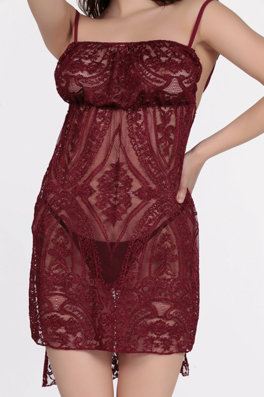 Özel Tasarım Transparan İç Gösteren Dantelli Askılı Seksi Şık Zarif Fantezi Gecelik