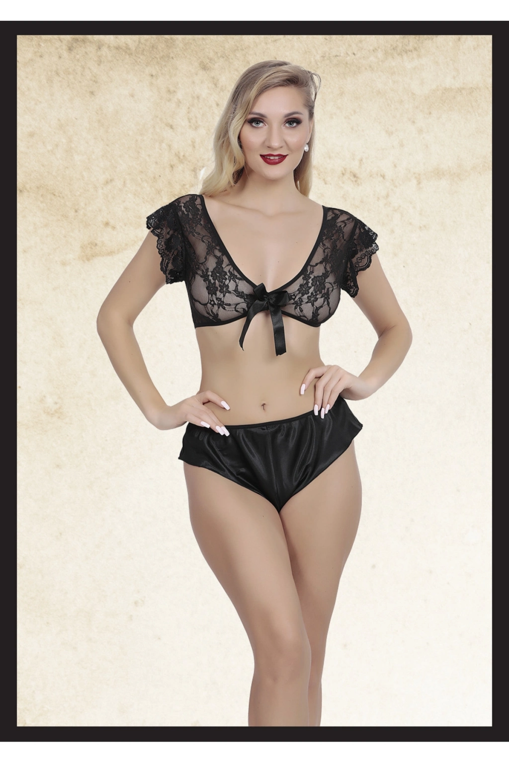 Özel Tasarım Transparan İç Gösteren Dantelli Seksi Şık Rahat Zarif Fantezi Şort Üst Takım