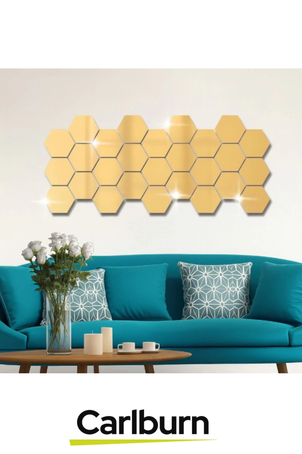 Özel Üretim Dekoratif Modern Altıgen Ev Ofis Duvar Dolap Yapışkanlı Akrilik Gold Ayna Seti 12 Adet
