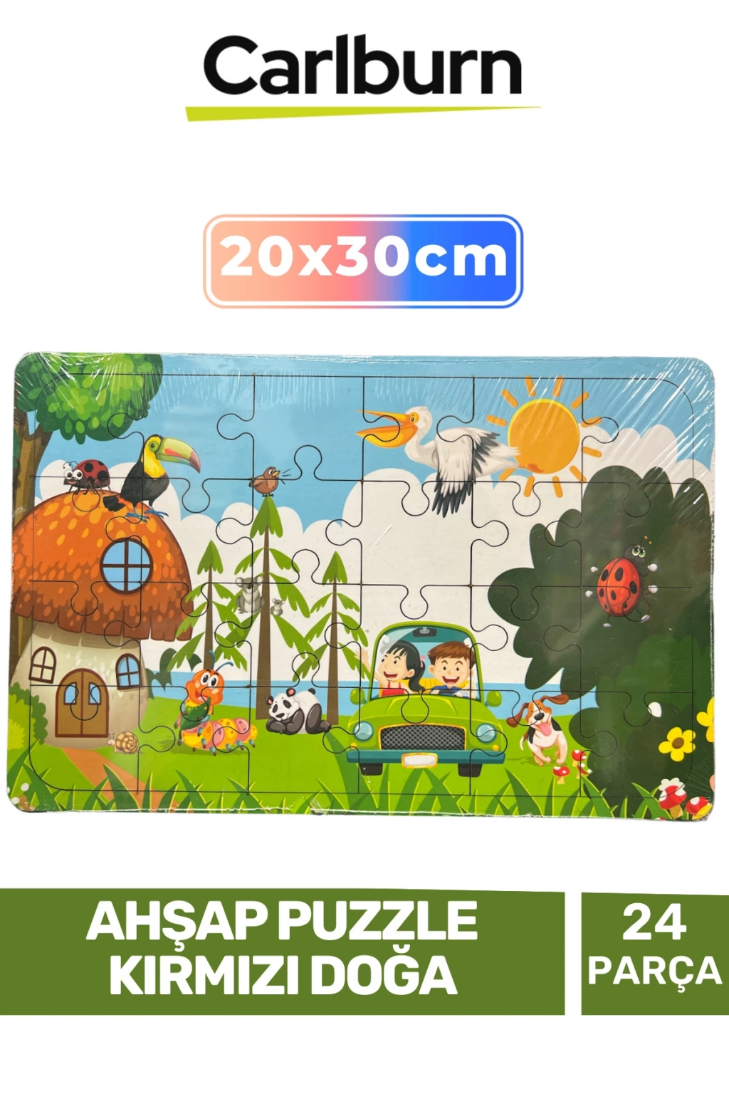 Özel Üretim Eğitici Zeka Geliştirici Öğretici Ahşap Puzzle Kırmızı Doğa - 24 Parça