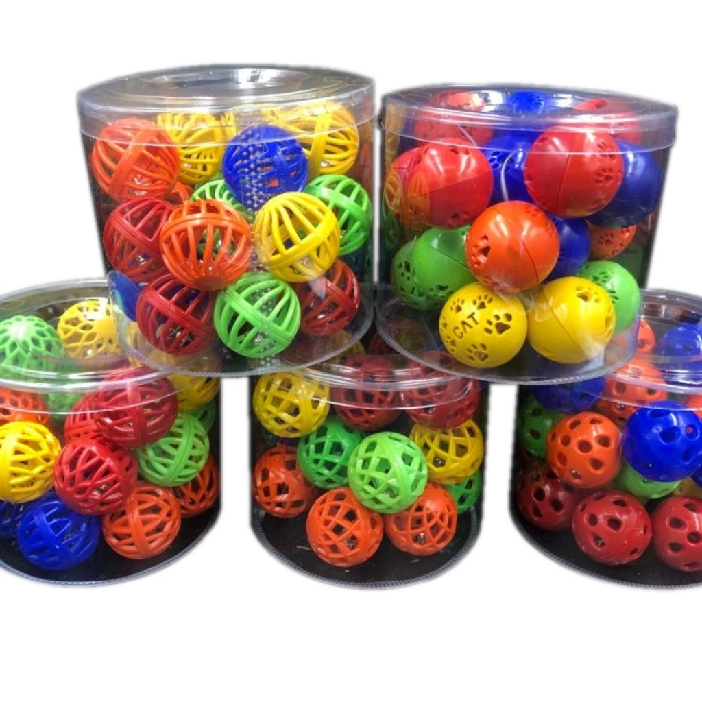 Özel Üretim Renkli Eğlenceli İnteraktif Sesli Dayanıklı Plastik Toptan Çıngıraklı Kedi Topu 100 Adet