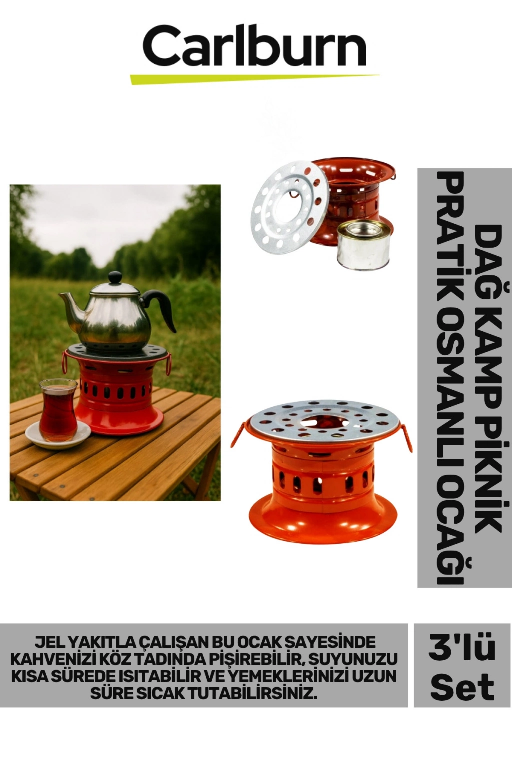 Özel Üretim Sağlam Metal Gövdeli Kamp Piknik Çay Kahve Su Isıtma Jel Yakıla Çalışan Osmanlı Ocağı