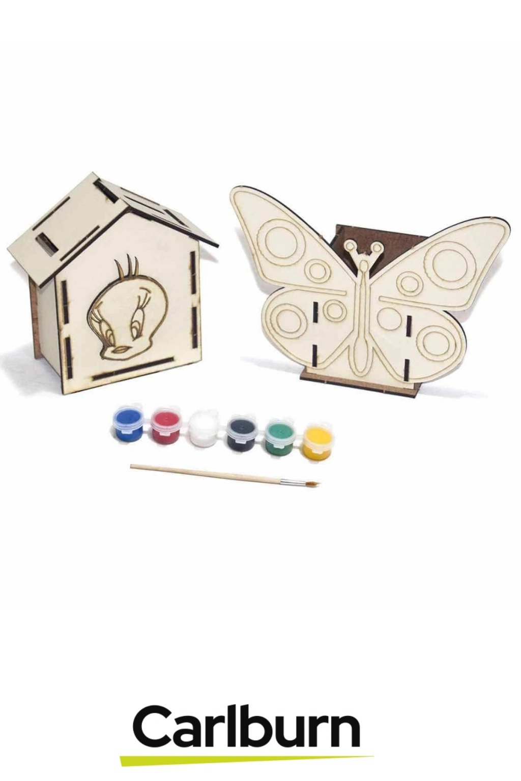 Ahşap kalemlik ve ahşap kumbara 3 mm mdf’nin lazerle kesilmesi ile oluşan ikisi bir arada set ürünüdür. Parçalar birleştirirken ve dilediğiniz gibi boyarken çocuğunuzla beraber çok keyifli vakit geçireceksiniz.