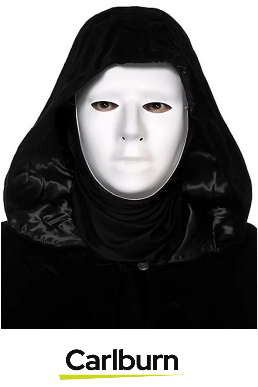 Parti Eğlence Siyah Kapüşonlu 120 cm Pelerin ve Beyaz Boyanabilir Tam Yüz Maske Kostüm Seti