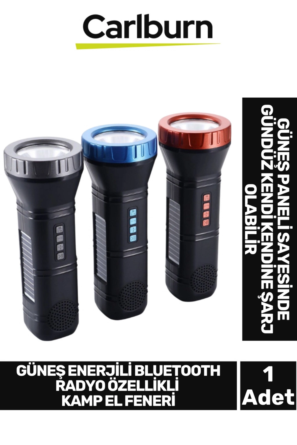 1 adet güneş enerjili Bluetooth radyo özellikli kamp el feneri