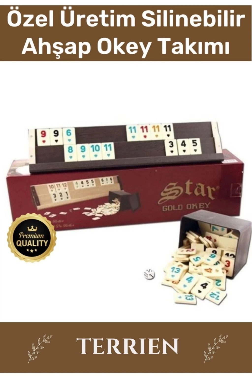 Premium Antibakteriyel Kir Tutmayan Çizilmeye Dayanıklı Silinebilir Gold Ahşap Ev Kafe Okey Takımı