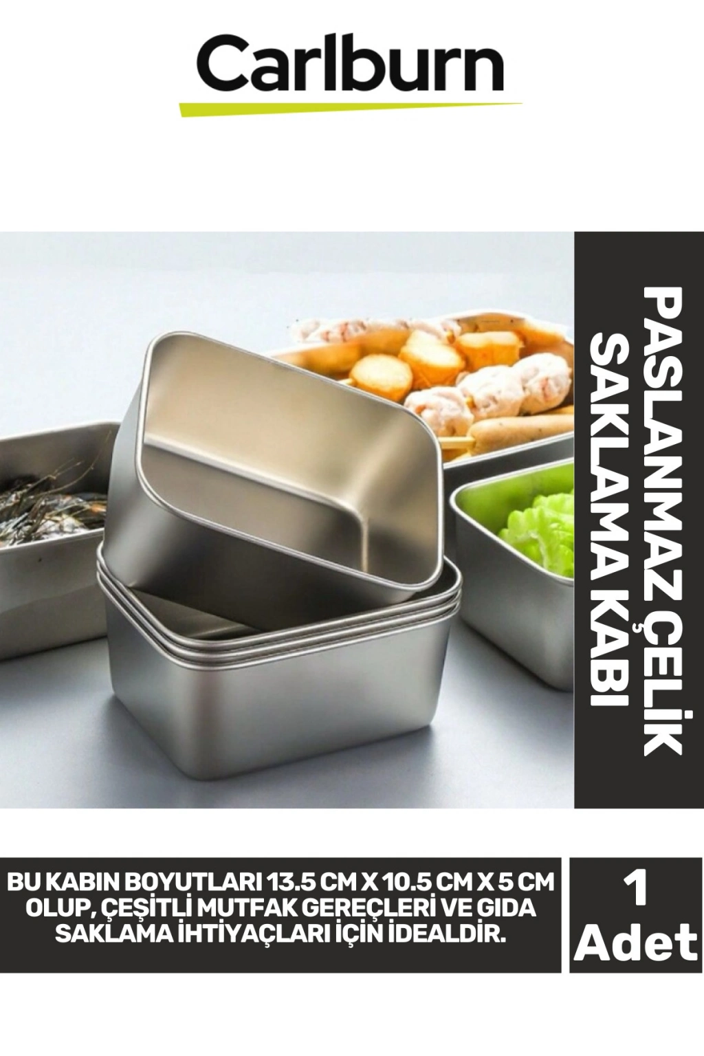 1 Adet Paslanmaz Çelik Saklama Kabı