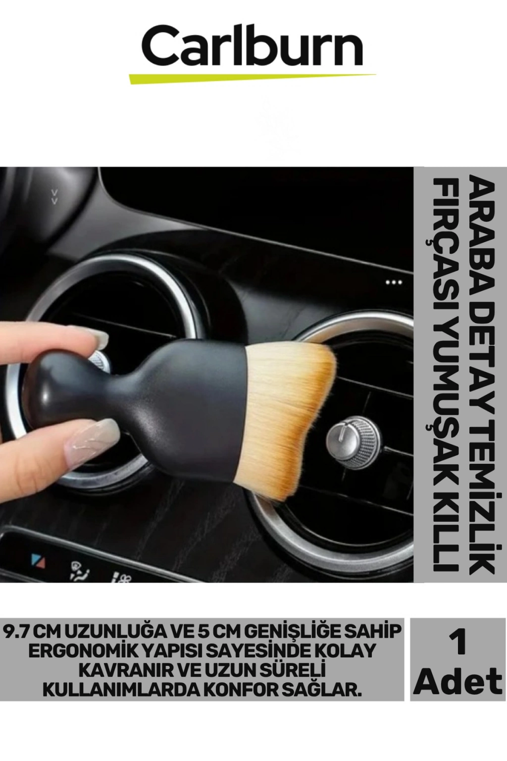 Ürün Özellikleri Araba detay temizlik fırçası, ultra yumuşak ve sık kıl yapısıyla aracınızın hassas yüzeylerini çizmeden temizlemek için özel olarak tasarlanmıştır.; 9.7 cm uzunluğa ve 5 cm genişliğe sahip ergonomik yapısı sayesinde kolay kavranır ve uzun süreli kullanımlarda konfor sağlar.; Klima ızgaraları, piano black kaplamalar, LED ekranlar, direksiyon çevresi, gösterge panelleri gibi dar alanlarda biriken tozları etkili şekilde temizler.; Fırçanın yumuşak kılları tozu nazikçe alırken, yüzeylere zarar vermez.; Ürüne özel şık pleksi kapaklı kutusu, fırçanın dik konumda hijyenik bir şekilde saklanmasını sağlar.; Hem otomobil iç temizliklerinde hem de hassas yüzeyli ev eşyalarının bakımında kullanılabilir.; Paket İçeriği 1 adet yumuşak kıllı araba detay temizlik fırçası