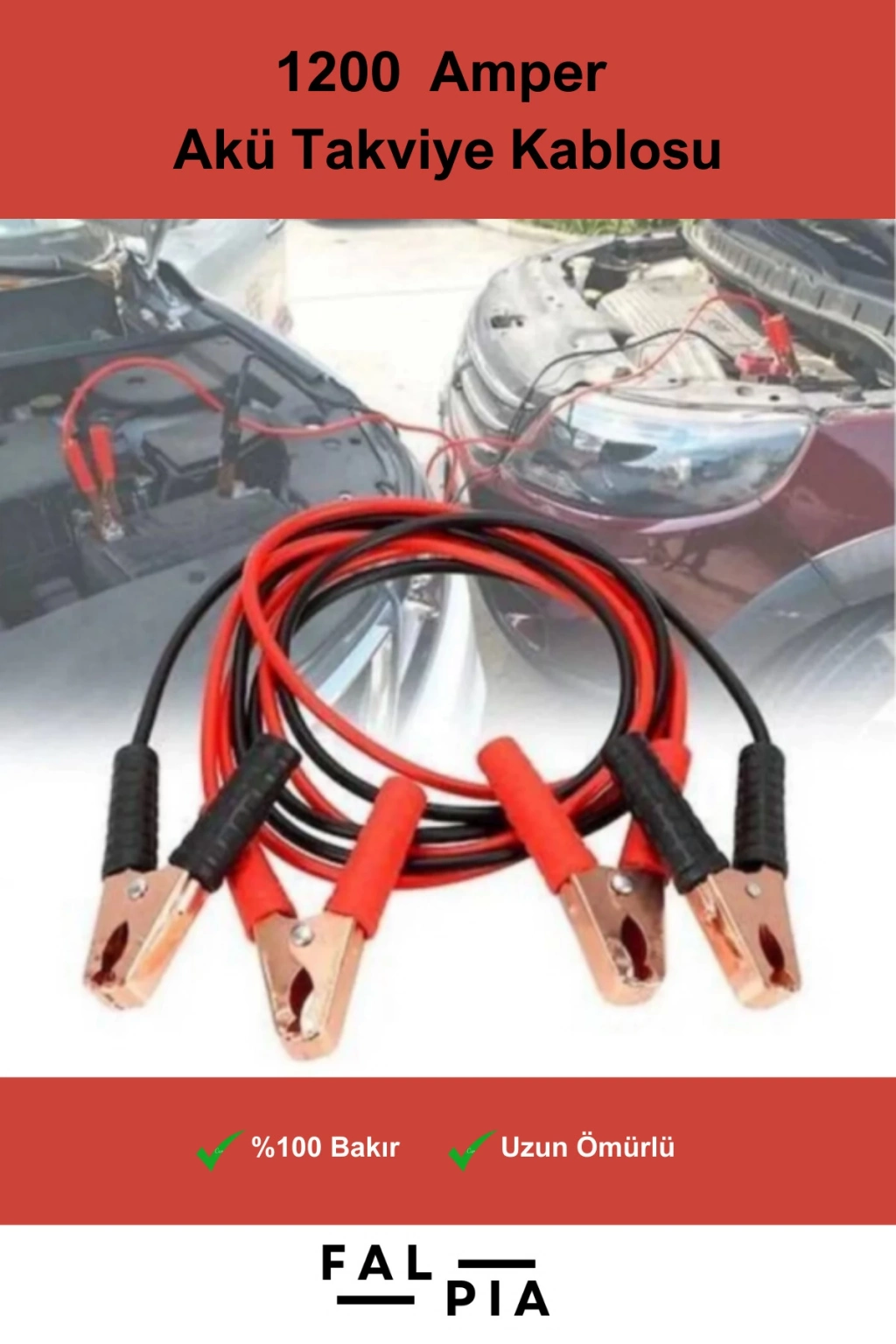 Premium Seri %100 Bakır Kalın Kablo 1200 Amper Güçlü Araç Oto Akü Takviye Hızlı Şarj Kablosu 1 Adet