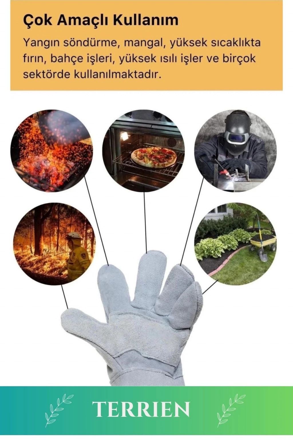 Premium Serisi Yanmaz Isıya Dayanıklı Eldiven Kaynak Yangın İçin Su Geçirmez Çok Amaçlı Deri Eldiven