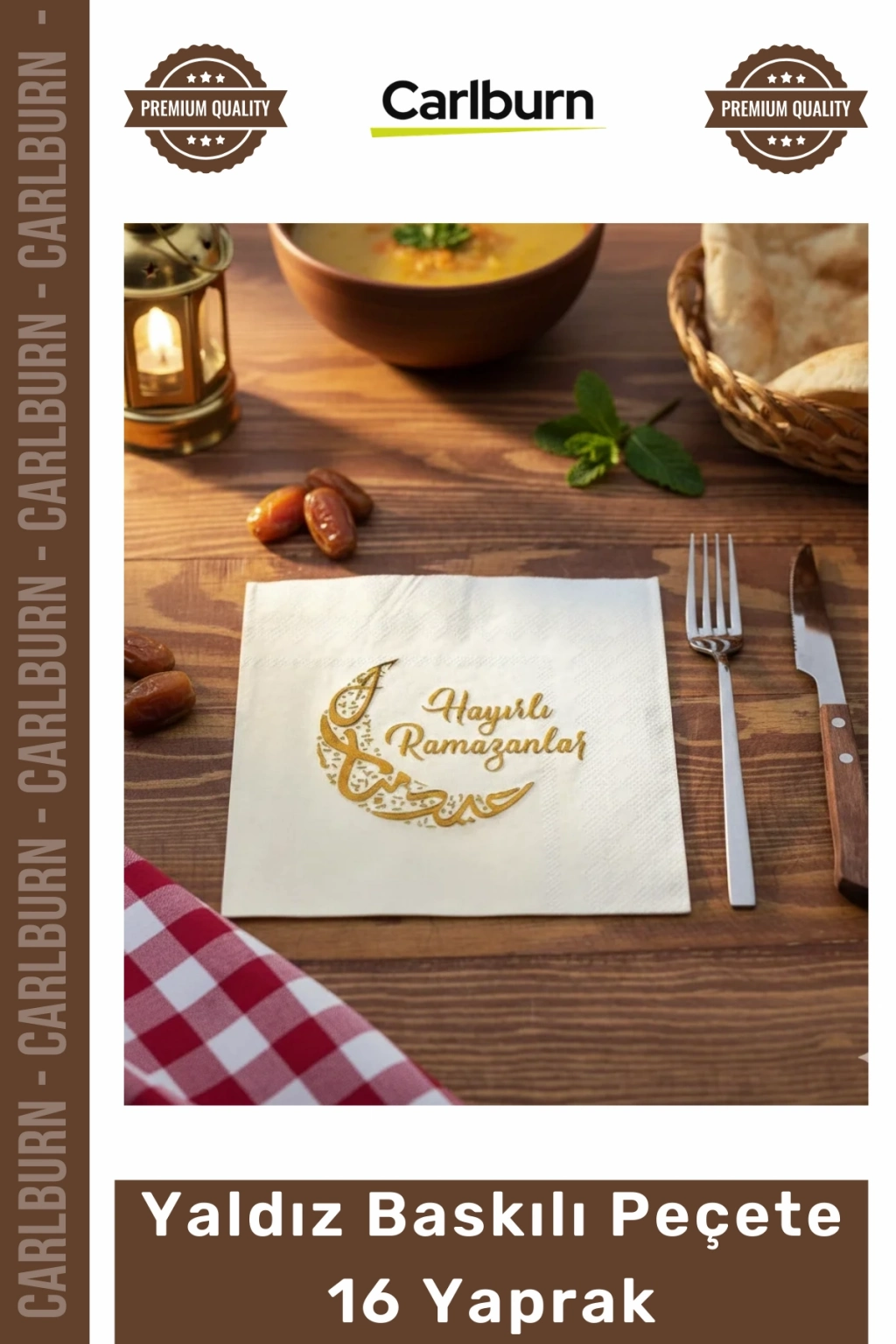 *   **Özel Ramazan Teması:** Altın rengi ay ve kandil figürleri ile iftar sahur sofralarınıza manevi bir dokunuş. Ramazan ruhunu en güzel şekilde yansıtır.