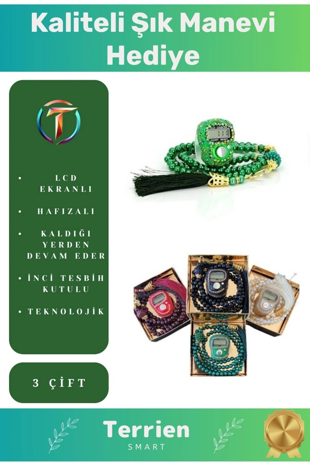 Ramazana Özel LCD Ekran Hafızalı Hac Umre Mevlüt Kandil Hediyesi Taşlı 3 Çift Zikirmatik Tesbih Seti