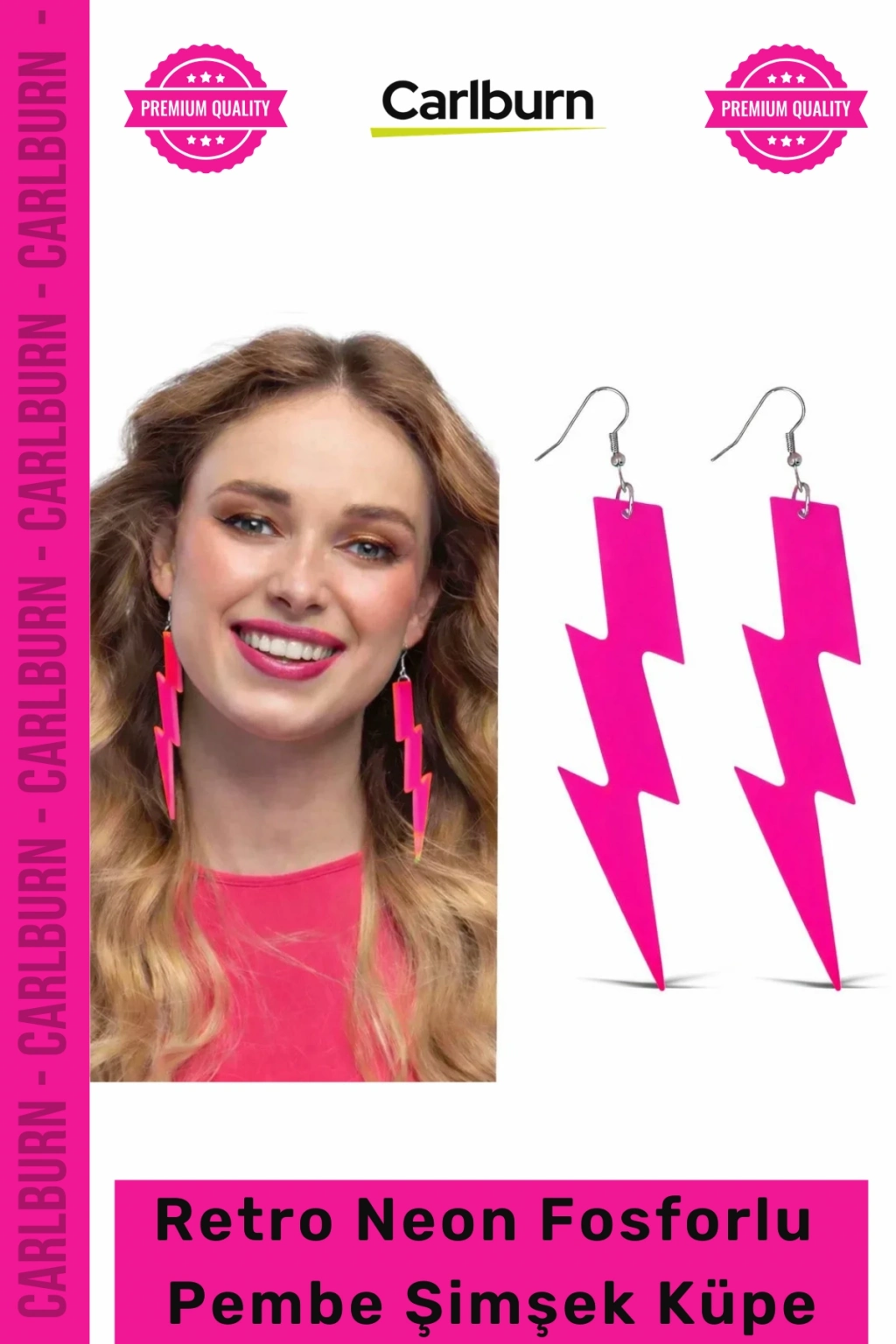 #Küpe 80'ler 90'lar Moda Parti Festival Canlı Dikkat Çekici İddialı Retro Neon Pembe Şimşek Küpe