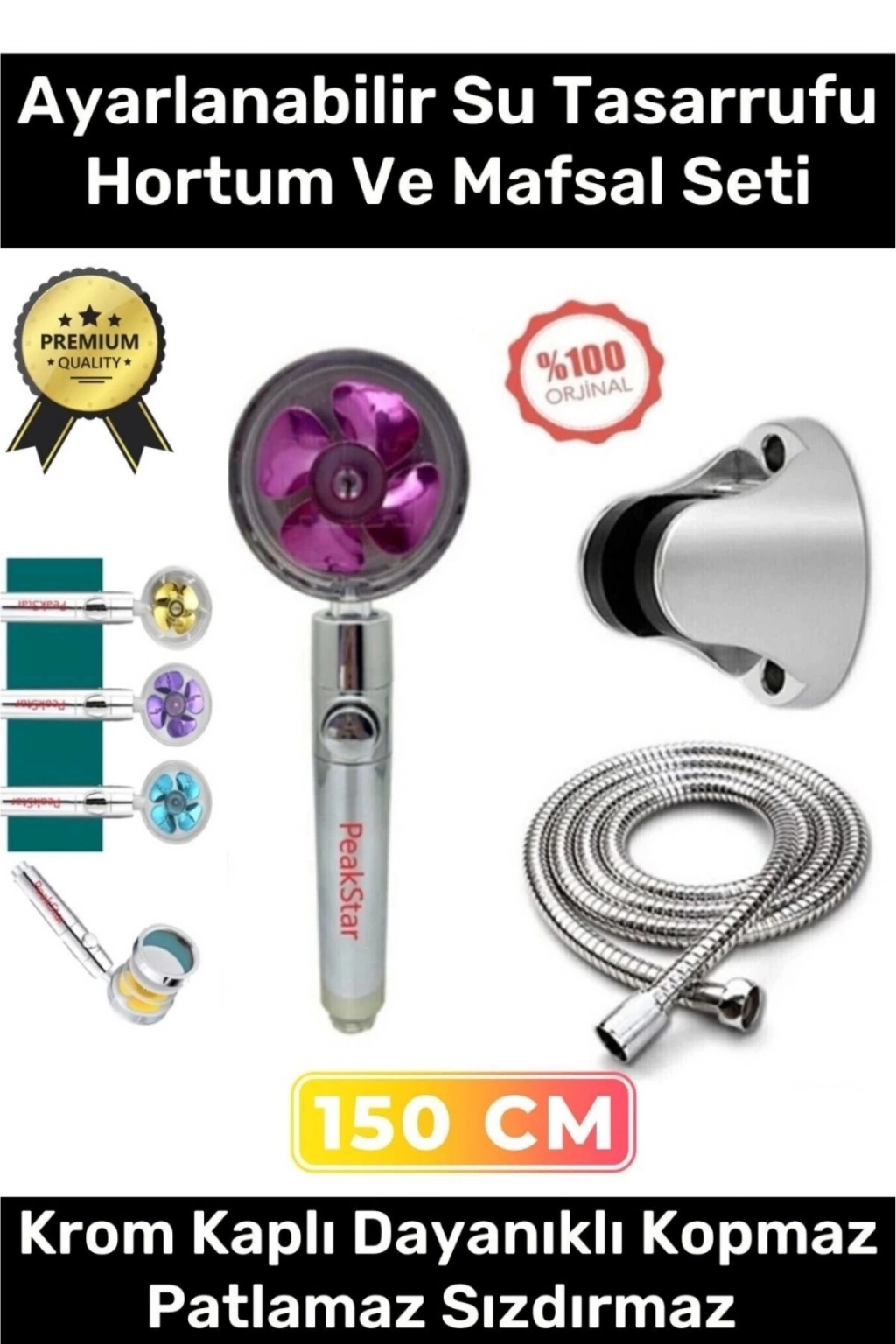 Sağlam Kopmaz Paslanmaz Turbo Duş Başlığı Basınçlı Ayarlanabilir Su Tasarrufu Hortum Mafsal Seti