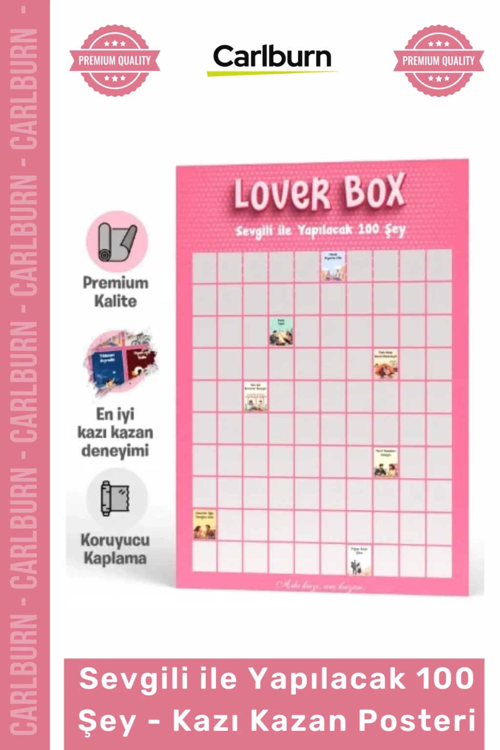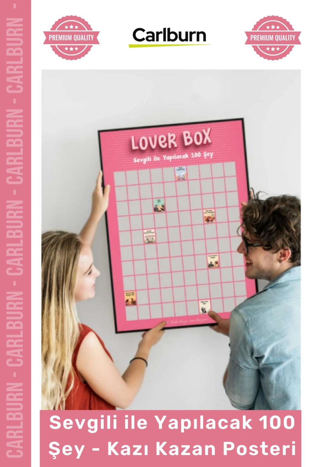 Sıradanlıktan kurtulup ilişkinize yeni bir soluk getirmek istiyorsanız, bu interaktif poster tam size göre. Sevgilinizle beraber yeni maceralara atılmanızı sağlayan ürün, aynı zamanda eviniz için modern ve şık bir duvar dekorasyonu oluşturur. Hem eğlenceli hem de duygusal bir deneyim sunan bu poster ile yıllar sonra dönüp bakabileceğiniz harika hatıralar biriktirmeye bugün başlayın.