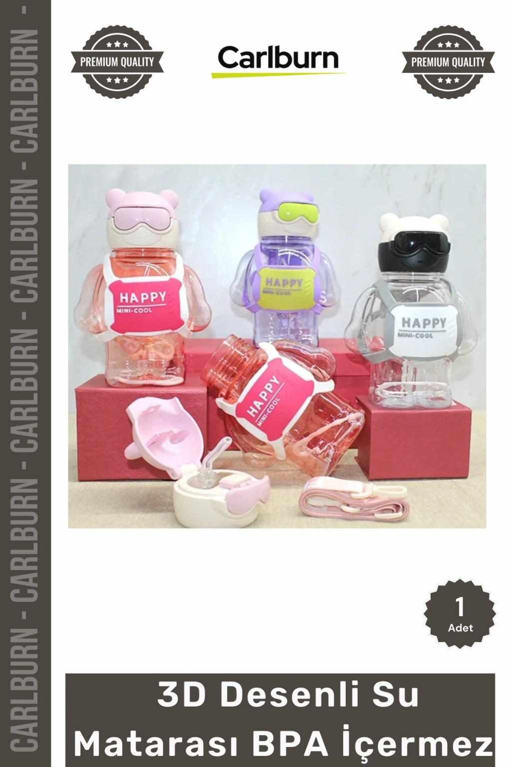 Özel Üretim Çocuk Okul Sızdırmaz Pipetli Askılı Sağlık Sevimli 3D Desenli Su Matarası BPA İçermez