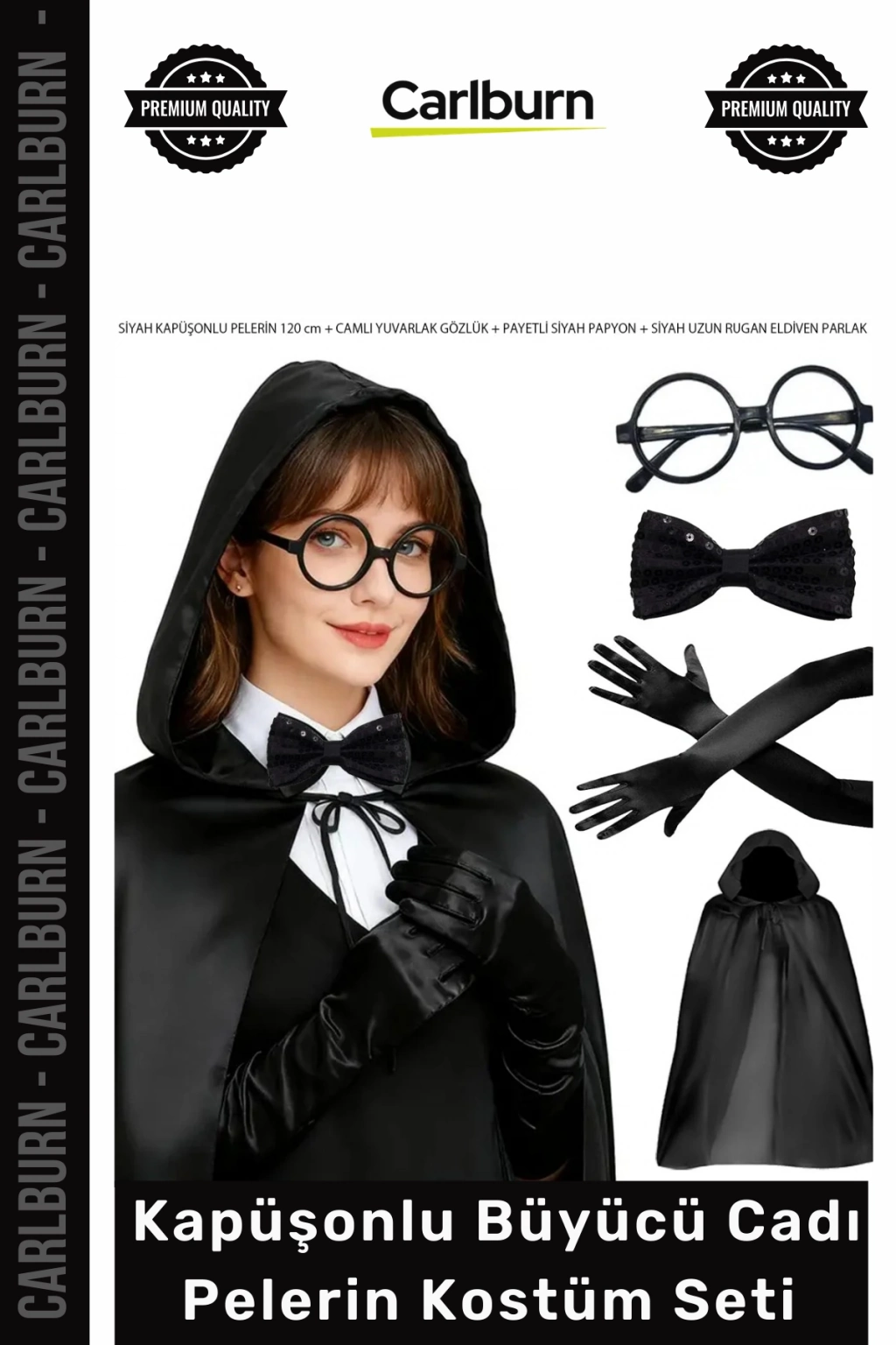 * **Kapsamlı 4 Parça Set:** Pelerin, gözlük, papyon ve eldivenlerden oluşan eksiksiz set, kostümünüzü tek seferde tamamlamanıza olanak tanır.